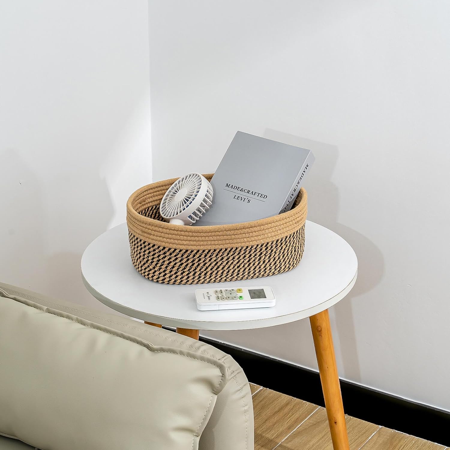 CubesLand Small Baskets, Storage Baskets for Organizing Shelves, Rectangular Woven Storage Baskets Natural Cotton Rope Toy Storage Bins Closet Baby Baskets Empty Gifts Baskets Camel/Mixed Black