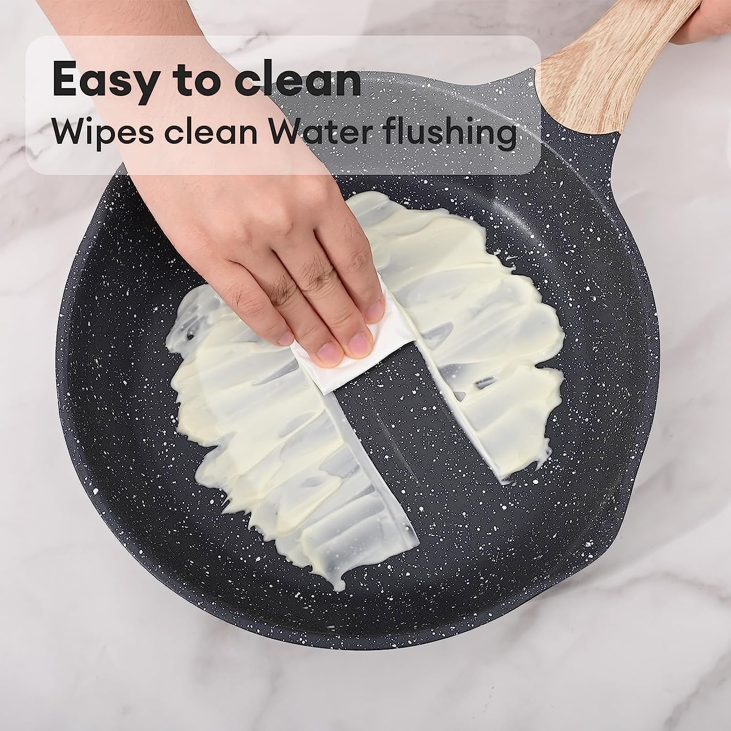 - Nonstick & Health: JEETEE nonstick frying pans with granite stone coating, which is PFOA free, safe & healthy. Require less oil or butter for cooking and minimal scrubbing for a spotless clean, giving you a healthier and more enjoyable at-home cooking experience