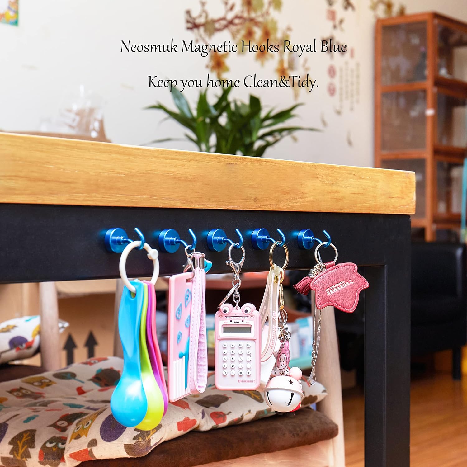 Neosmuk Magnetic Hooks, Heavy Duty Earth Magnets with Hook for Refrigerator, Extra Strong Cruise Hook for Hanging, Magnetic Hanger for Cabins, Grill (Blue, Pack of 10)