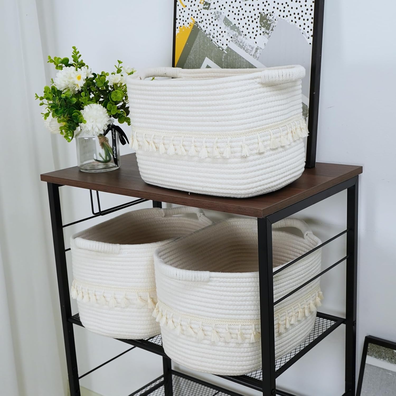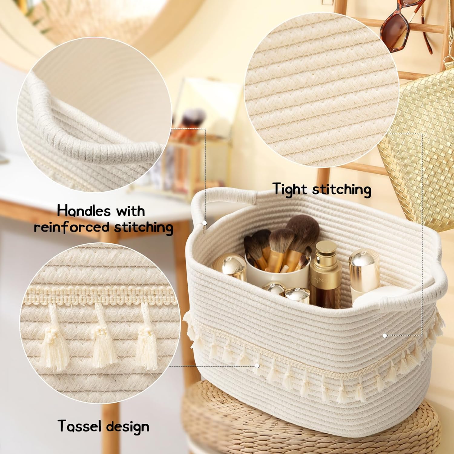 - Thoughtful gift idea: Our woven storage basket are soft, flexible, and durable, with a unique tassel design that sets them apart from the rest. Itβs a thoughtful gift for friends and family. The fabric storage are packaged nicely and ready to be gifted
