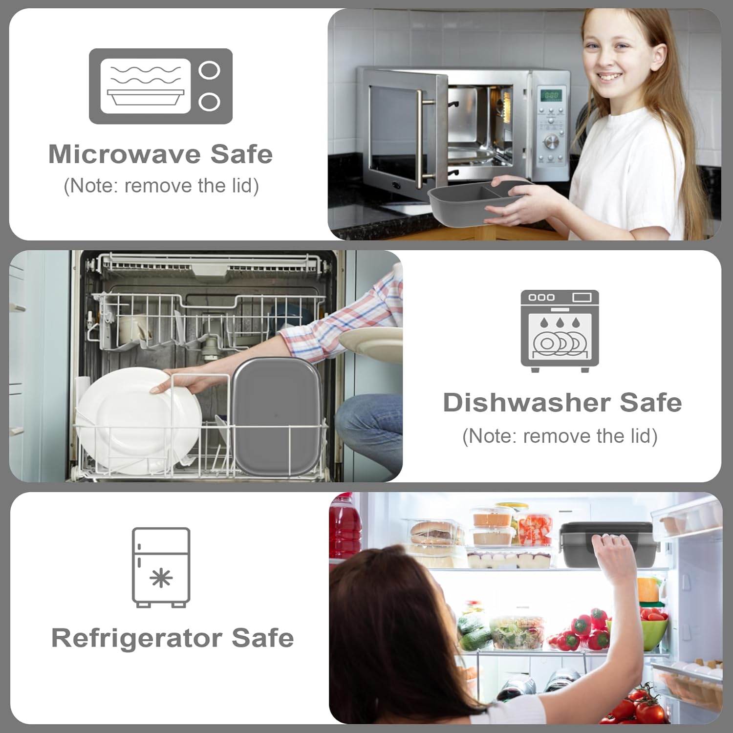 - Food-Grade Materials for Healthy Eating: Our lunch box containers is made of high-quality food-grade PP+PE materials, ensuring it is free from BPA. It is safe to use in the microwave, refrigerator, and dishwasher (excluding the lid). Choose a healthier option for you and your family with our dedicated design