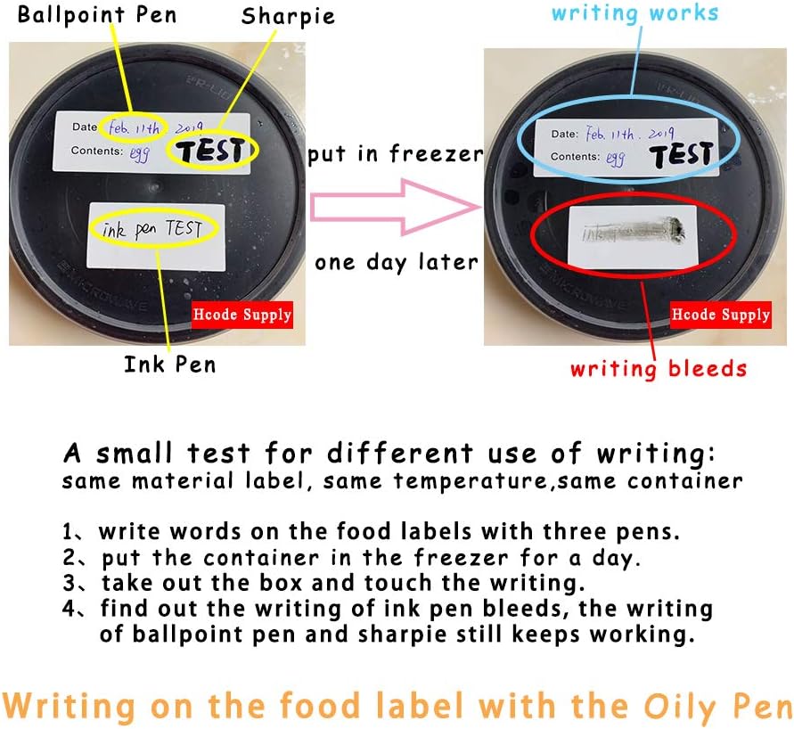 - ❤ Write date and content with a Oily Pen like Ballpoint Pen or marker, prevents your writing bleeds in freezer.