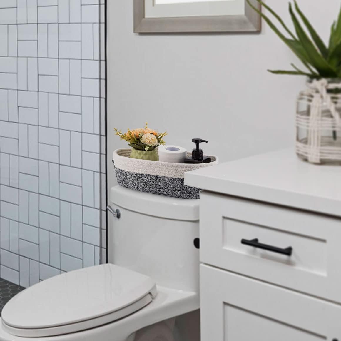- 🍀Multi-purpose: Decor storage basket fits nicely on the counter or toilet tank,and is perfect to hold vase,planter,air freshener,soap dispenser.This storage basket can be used not only in the bathroom,but also as a organizer in living room,bedroom or nursery