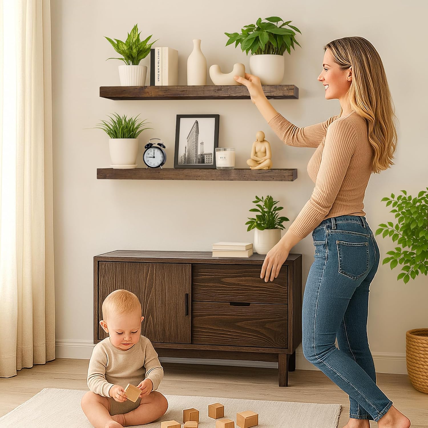 - Easy Installation: Installing our floating shelf is a breeze. With user-friendly instructions and included mounting hardware, you'll have it securely hung on your wall in no time, adding both charm and organization to your space.