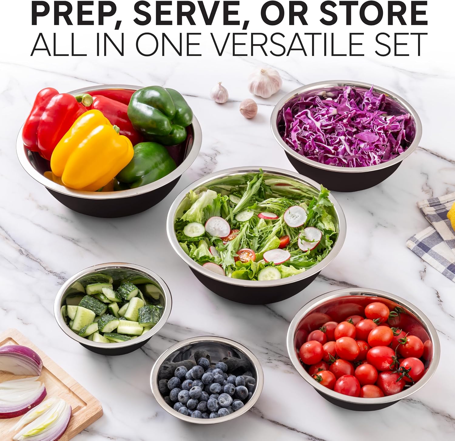 COOK WITH COLOR Stainless Steel Mixing Bowls Set - Nesting Bowls, 6 Pieces, Black