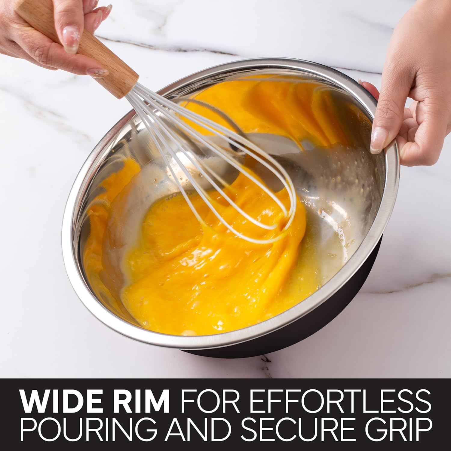 - Multiple Sizes - From mixing doughs, to prepper salad dressings, this bowl set has a size perfect for every dish.