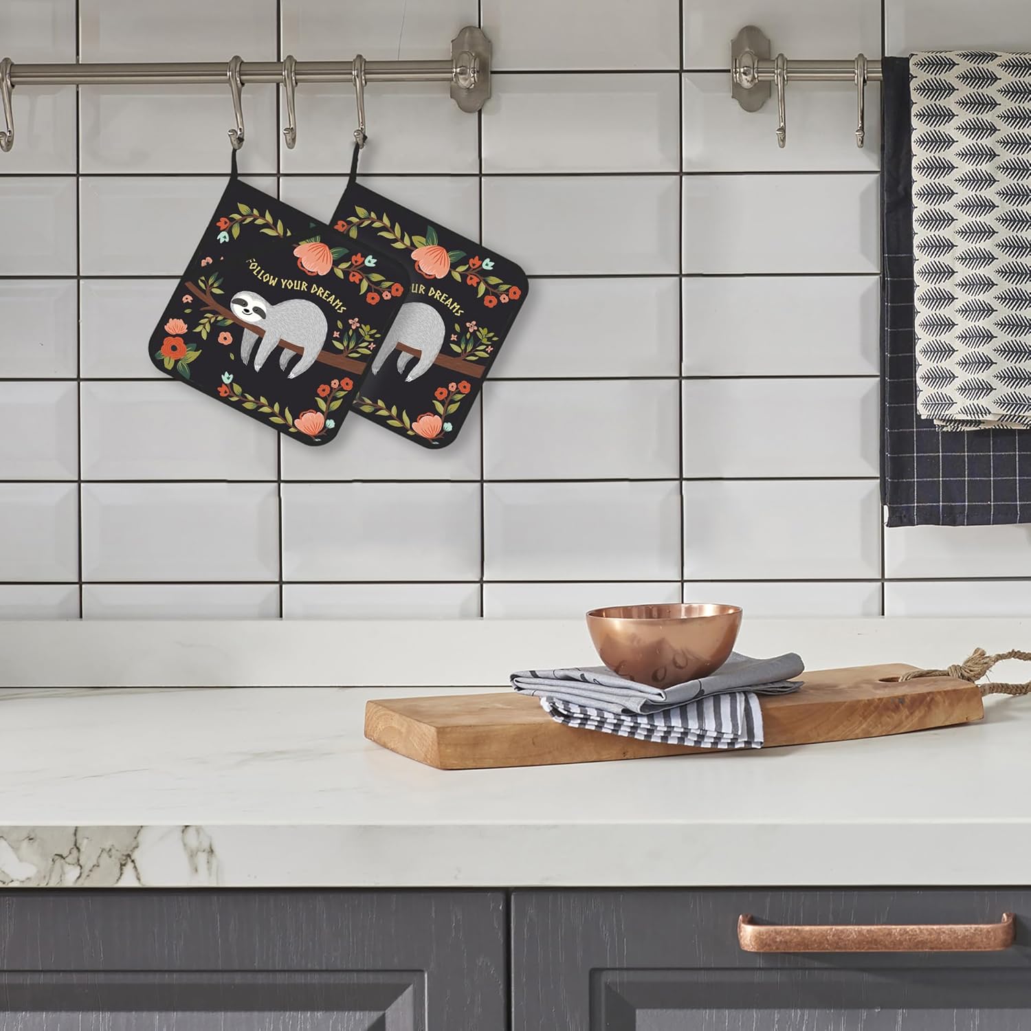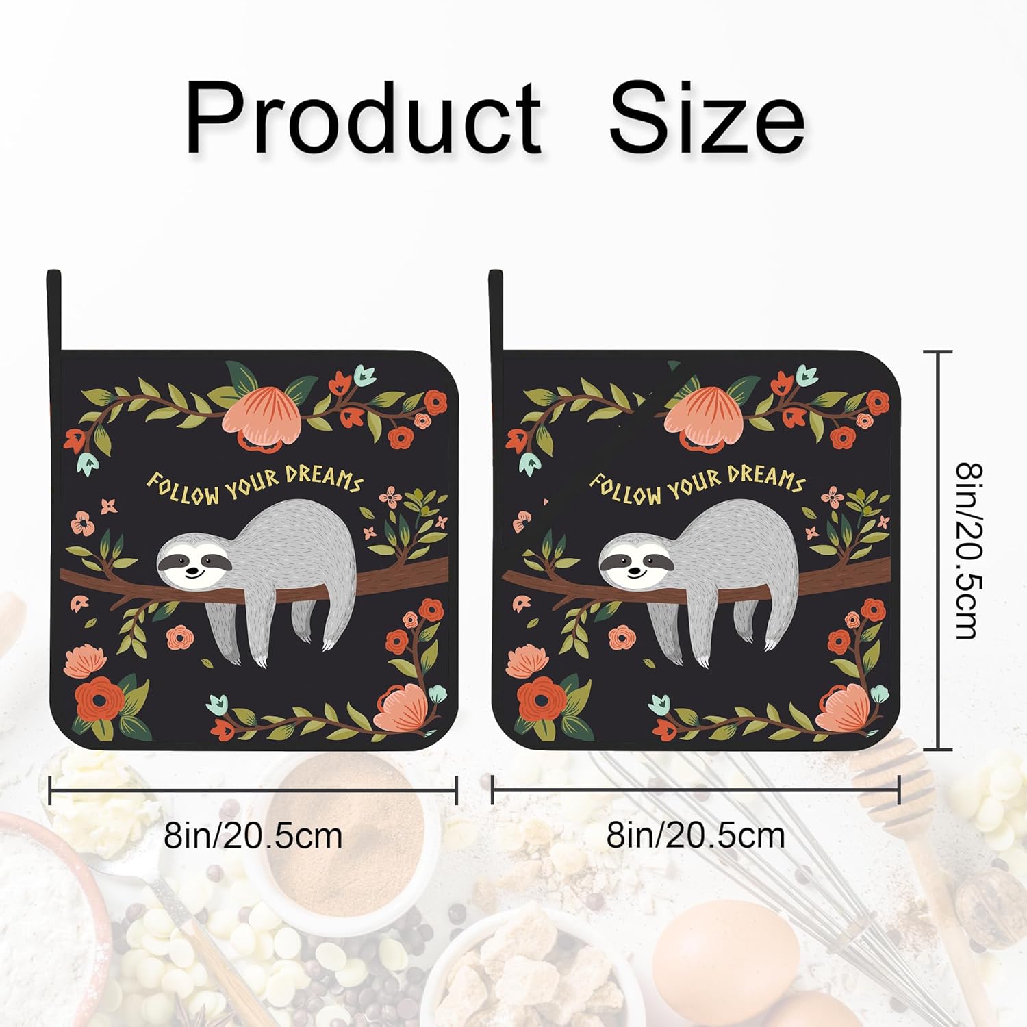 Pot Holder Set of 2,Cute Cartoon Sloth Kitchen Heat Resistant Potholder for BBQ Cooking Baking,Food Hot Pat for Women Men Kitchen Wear