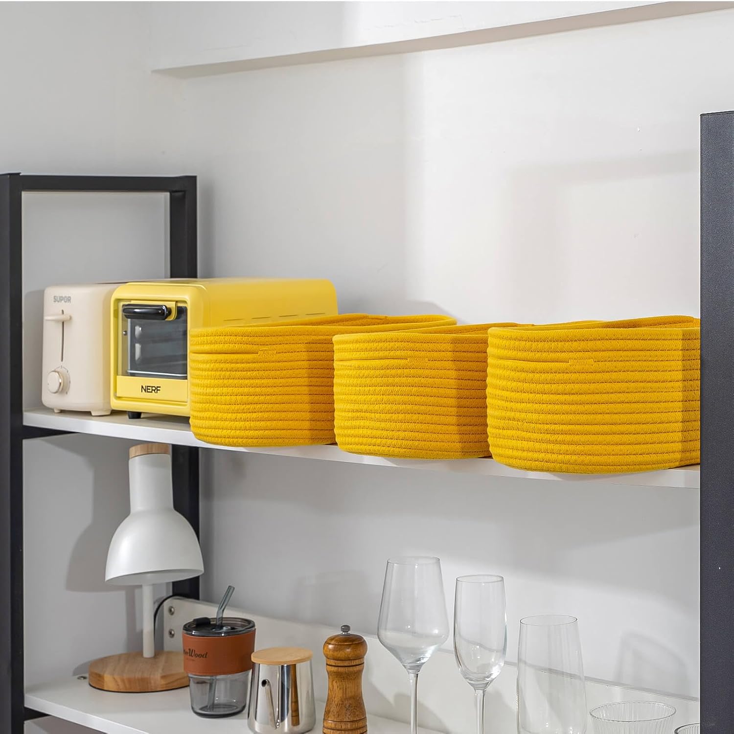 CubesLand Cube Shelf Closet Storage Baskets Bins Set 2,Woven Basket for Organizing/Storage,Long-lasting &Skin-friendly Toy Storage Basket Bin,Stylish Room Decor Basket,Yellow Cotton Rope Basket