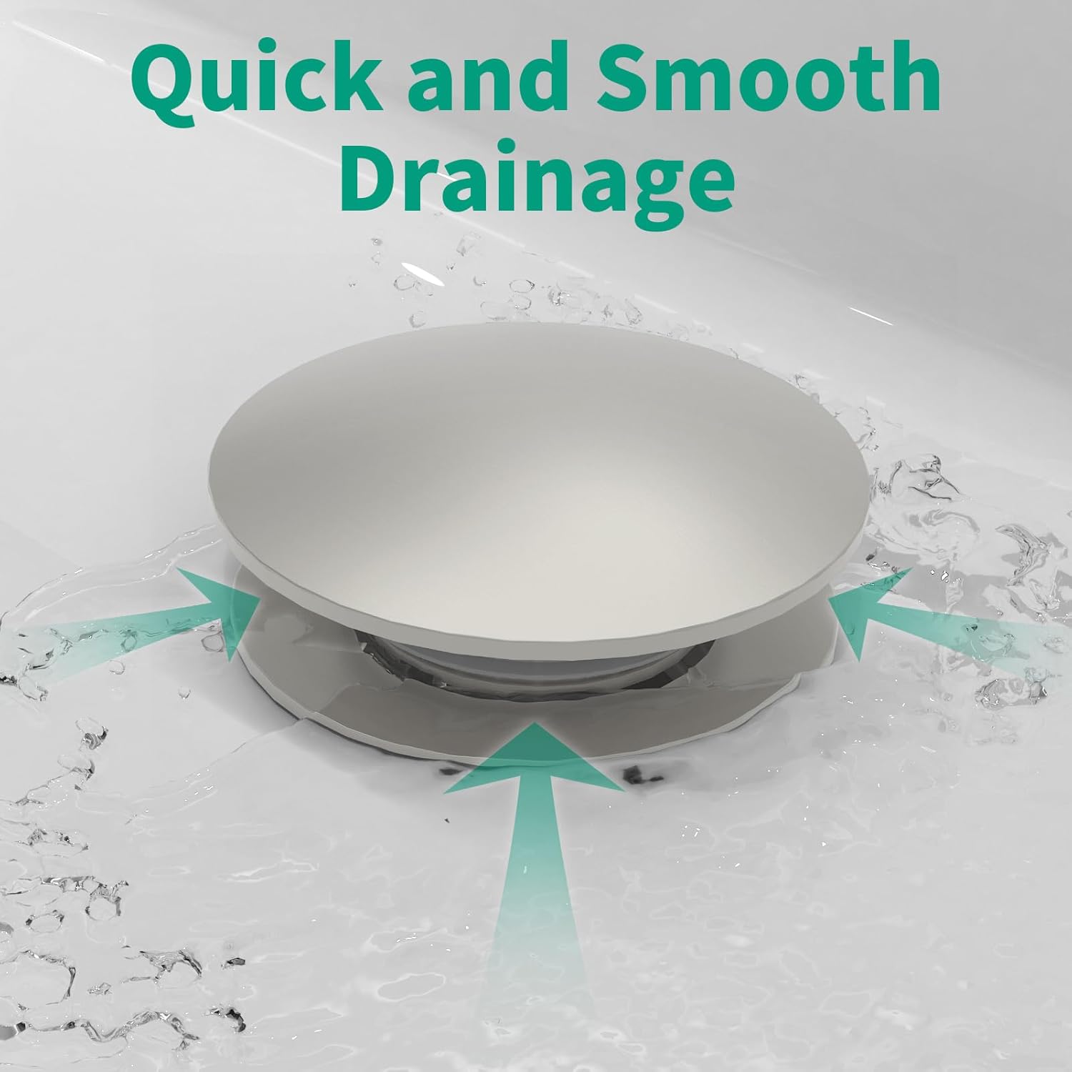 - 【Easy to Operate & Install】: This stainless steel sink drain stopper adapts a large button pop-up design so that you can operate it easily. Simply press the top of the drain to open for quick drainage and press again to close to stored water. Furthermore, you can install it by yourself easily without hiring a plumber. Please check the installation instructions carefully before installation and ensure that the gasket is in the correct position and direction to avoid leakage.