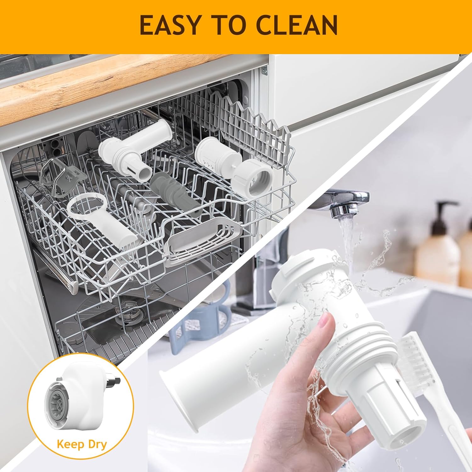 - Easy to Clean: This pasta maker attachment for Kitchenaid is detachable, which makes cleaning extremely convenient. Equipped with a cleaning brush that allows you to remove the dough attached to the surface of the Output Port. NOTE: Keep the Power Center Dry