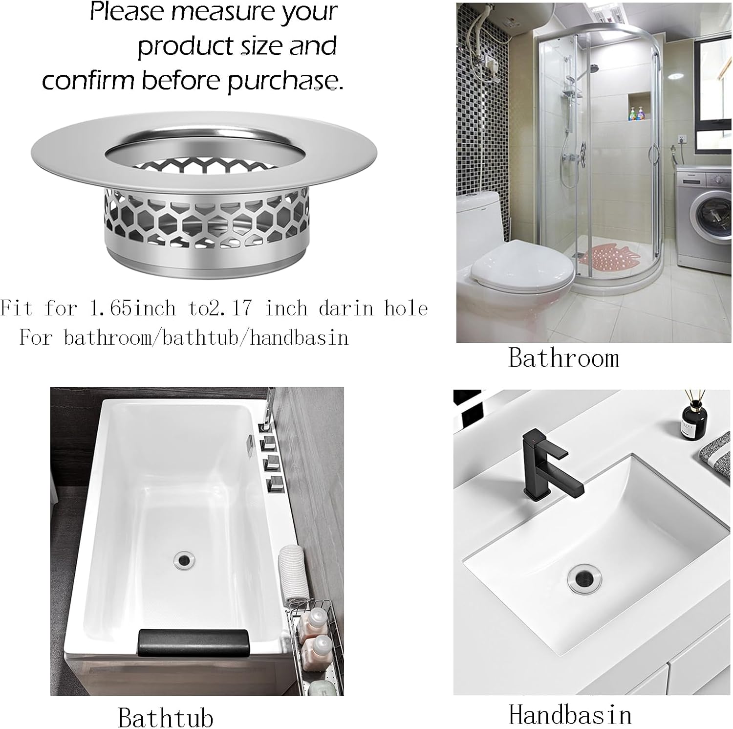 Hair Catcher Shower Drain Bathtub Lavatory Sink Drain Strainer for Laundry, Mop Pool, Utility, Slop, RV Sink, Stainless Steel Drain Filter。Fit Hole Size from 1.65-2.17" ,2Pack (1.5”)