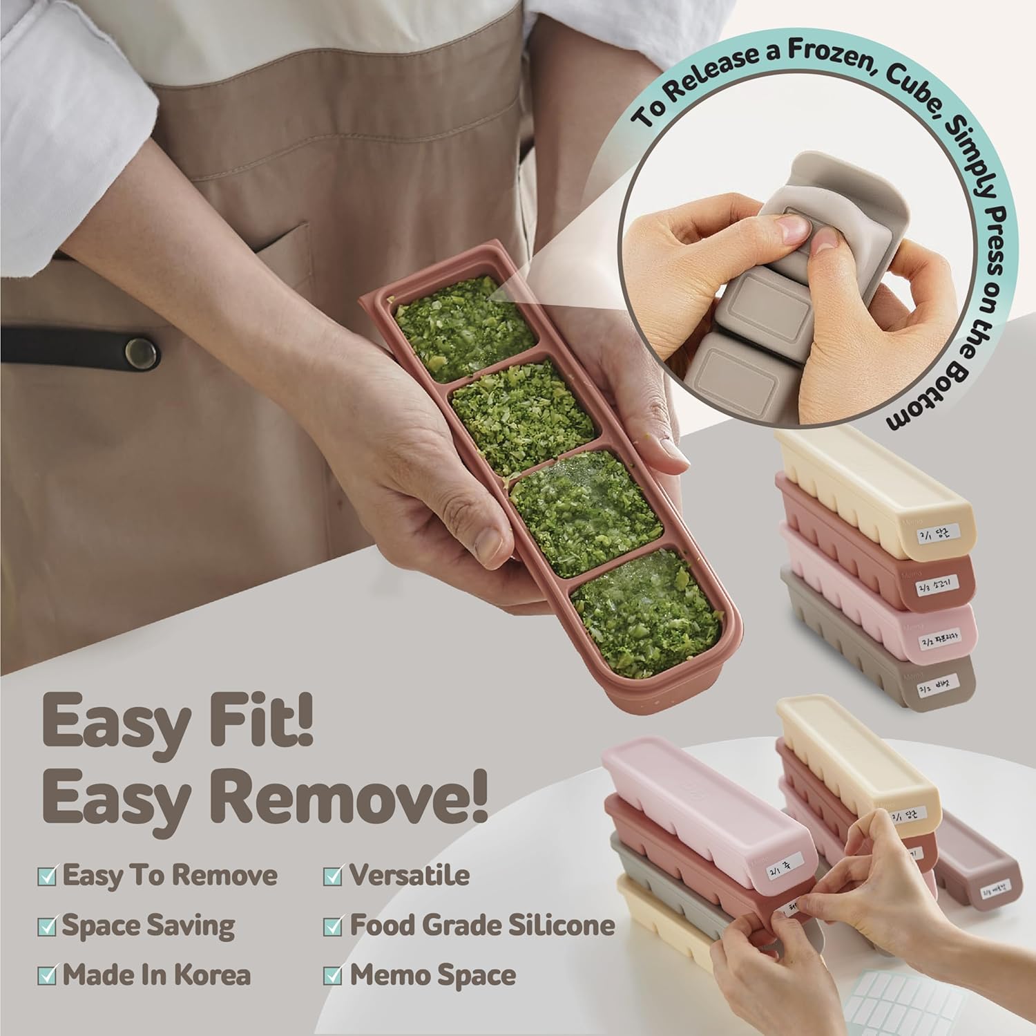- Slim and Compact Design: These silicone freezer containers are available in 4, 6 or 12 compartments, featuring a stackable, ultra-slim and ergonomic design for easy storage. The ultra-wide area which receives cold air ensures a faster freezing process of the contents!