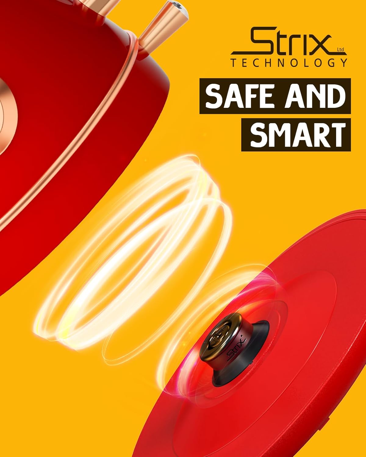 - ăTriple Security Guaranteeă- STRIX thermostat technology provides triple security for your use. Including 1-Auto shut-off when water begins to boil; 2-Auto shut-off when the kettle body is lifted from the base; 3-Prevent the kettle from turning on with no water inside.