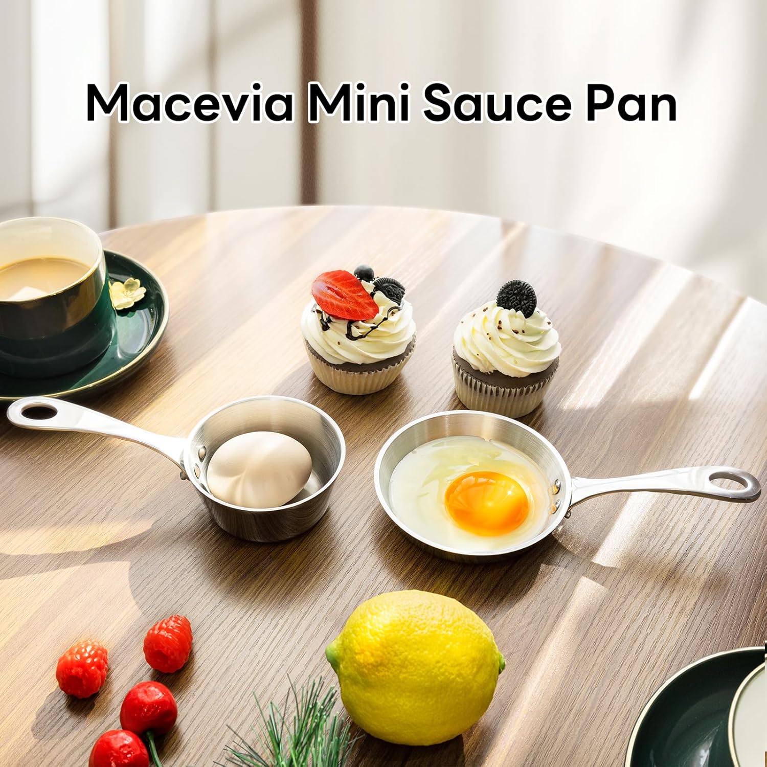 - Mini 3-Ply stainless steel construction: 18/10 stainless steel interior, polished stainless steel exterior, and a pure aluminum core sandwiched between two layers of stainless steel, the triple-layer construction ensures excellent fast heating and even heat dissipation performance. Note that the copper sauce pan is NOT suitable for induction cooktops