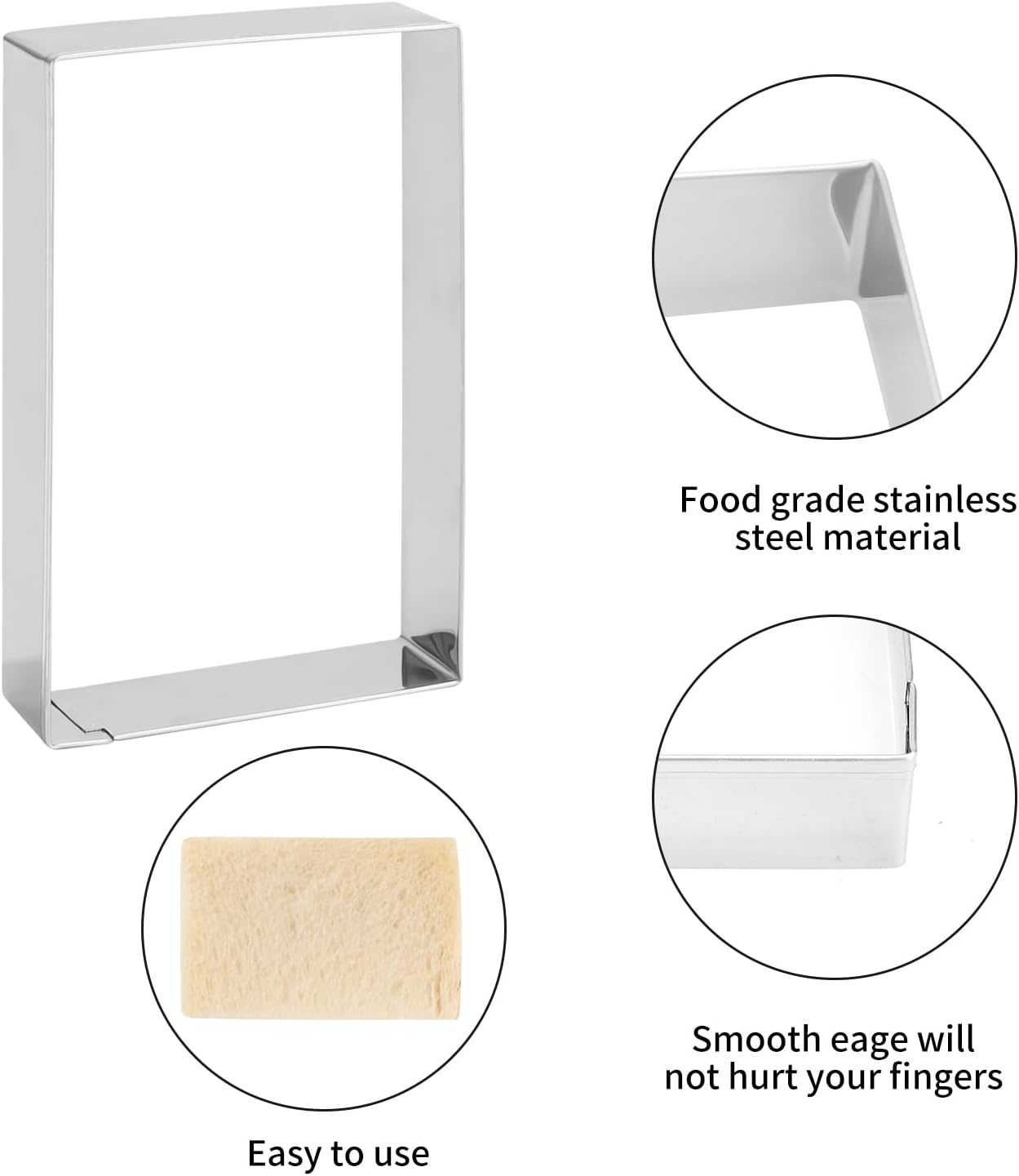 Rectangle cookie cutter ANCKNE Stainless Steel Rectangle Biscuit Molds Square Pastry Molds Fondant Cake Cookie Cutter Set 1 Inch Depth