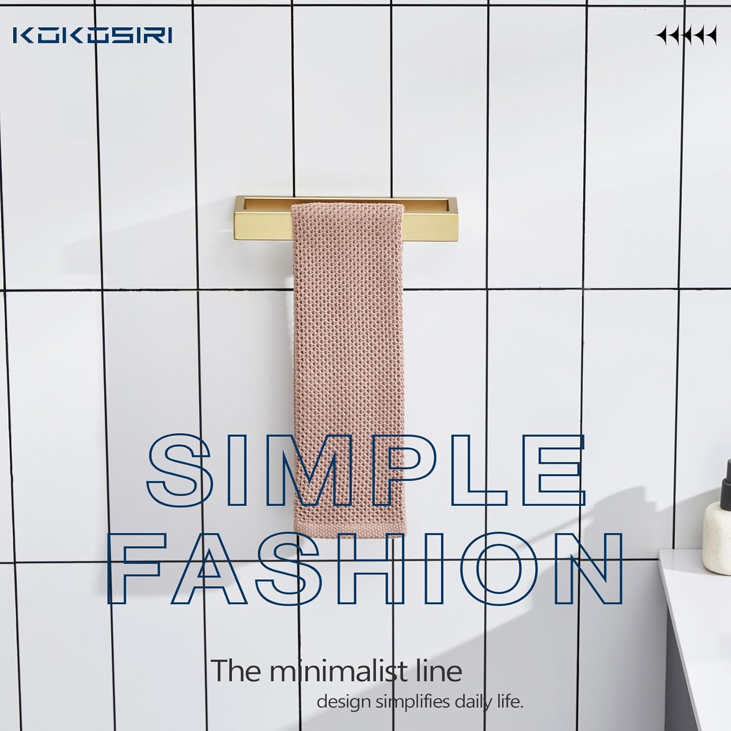 KOKOSIRI Towel Ring Brushed Gold Hand Towel Holder 9 Inch Kitchen Towel Hanger Rack Stainless Steel Bathroom Hardware Wall Mounted, 1 Pack B4008BG-L9
