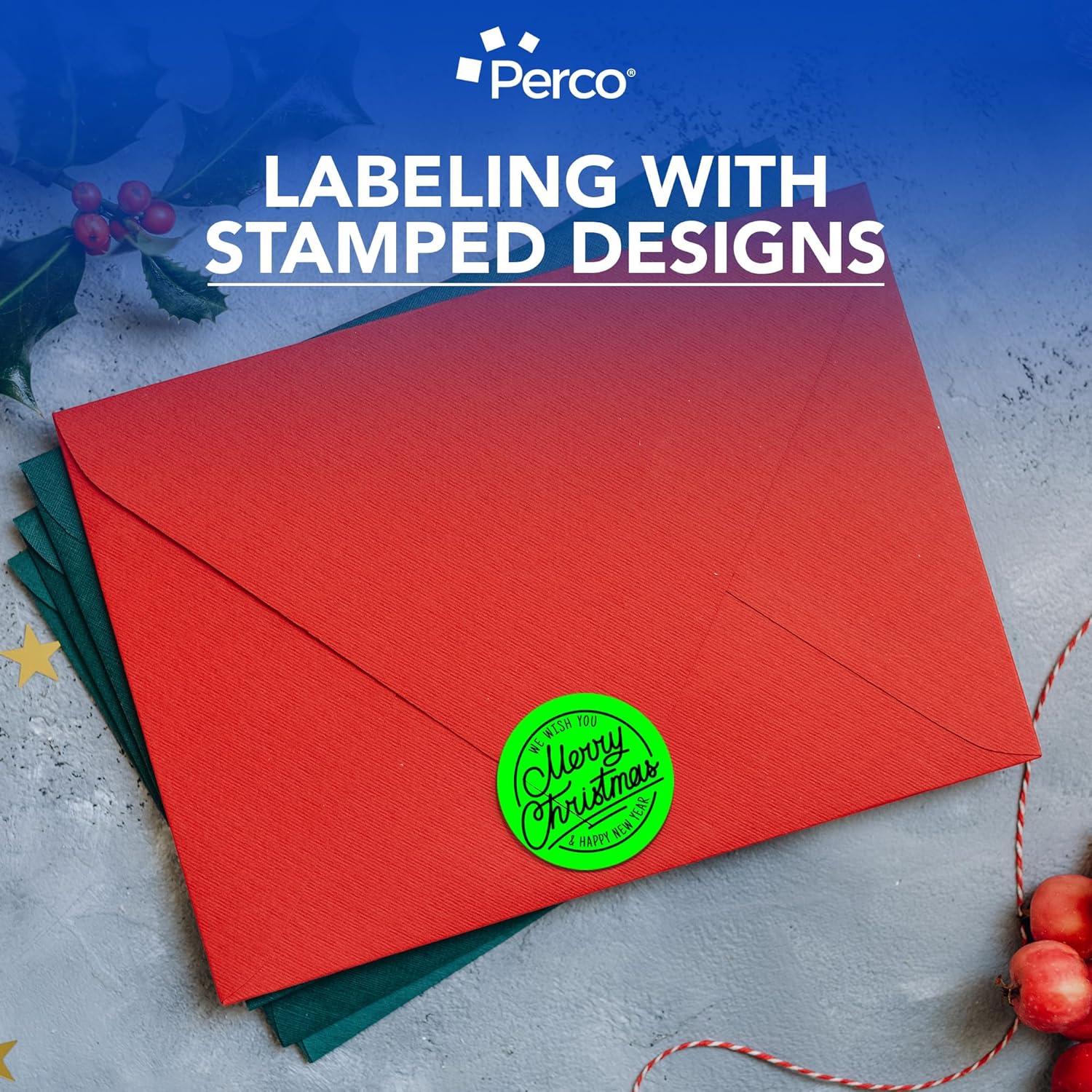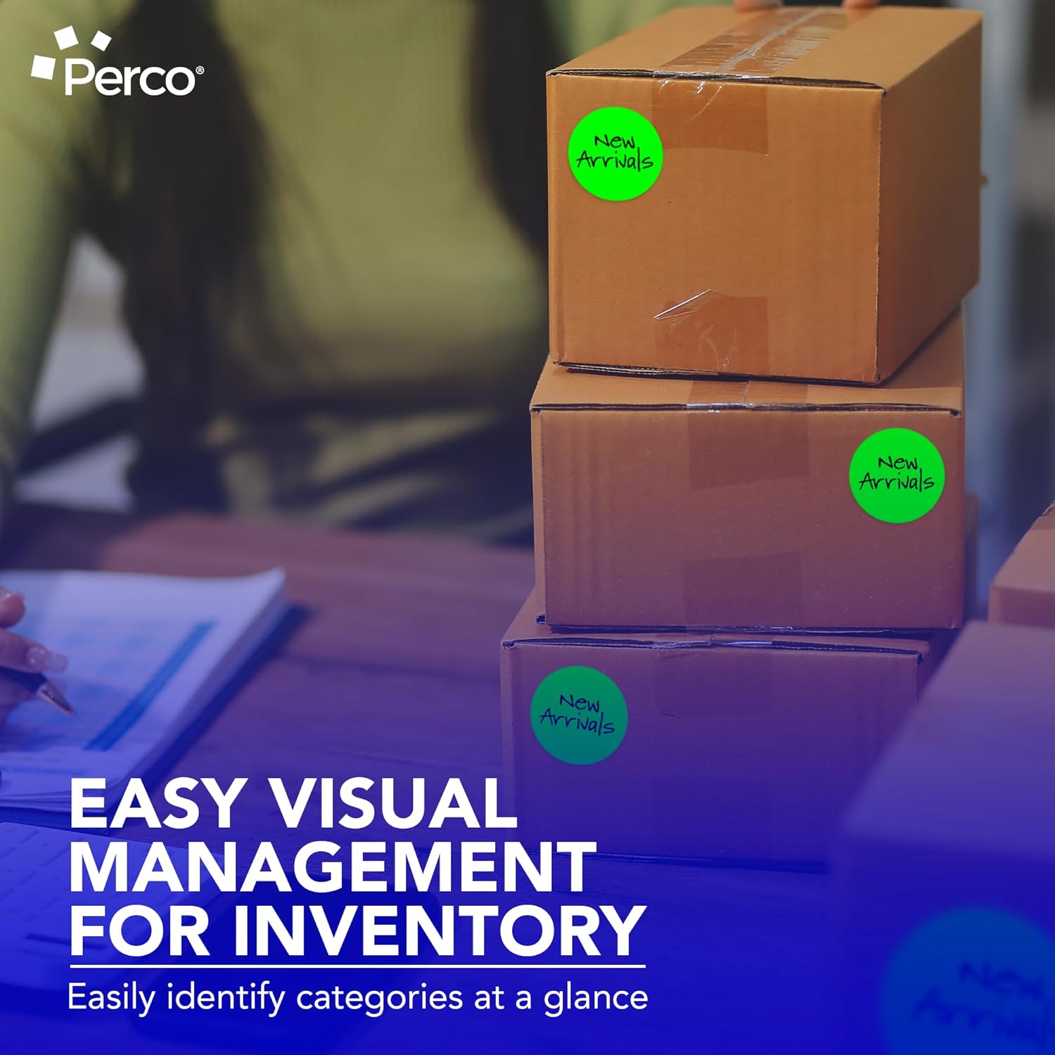 Perco Fluorescent Green 3-Inch Round Circle Dot Sticker Labels with Easy Peel Perforation - 500 Labels per Roll - Strong Adhesion, Vibrant Colors for Organizing, Crafting & More - Made in USA
