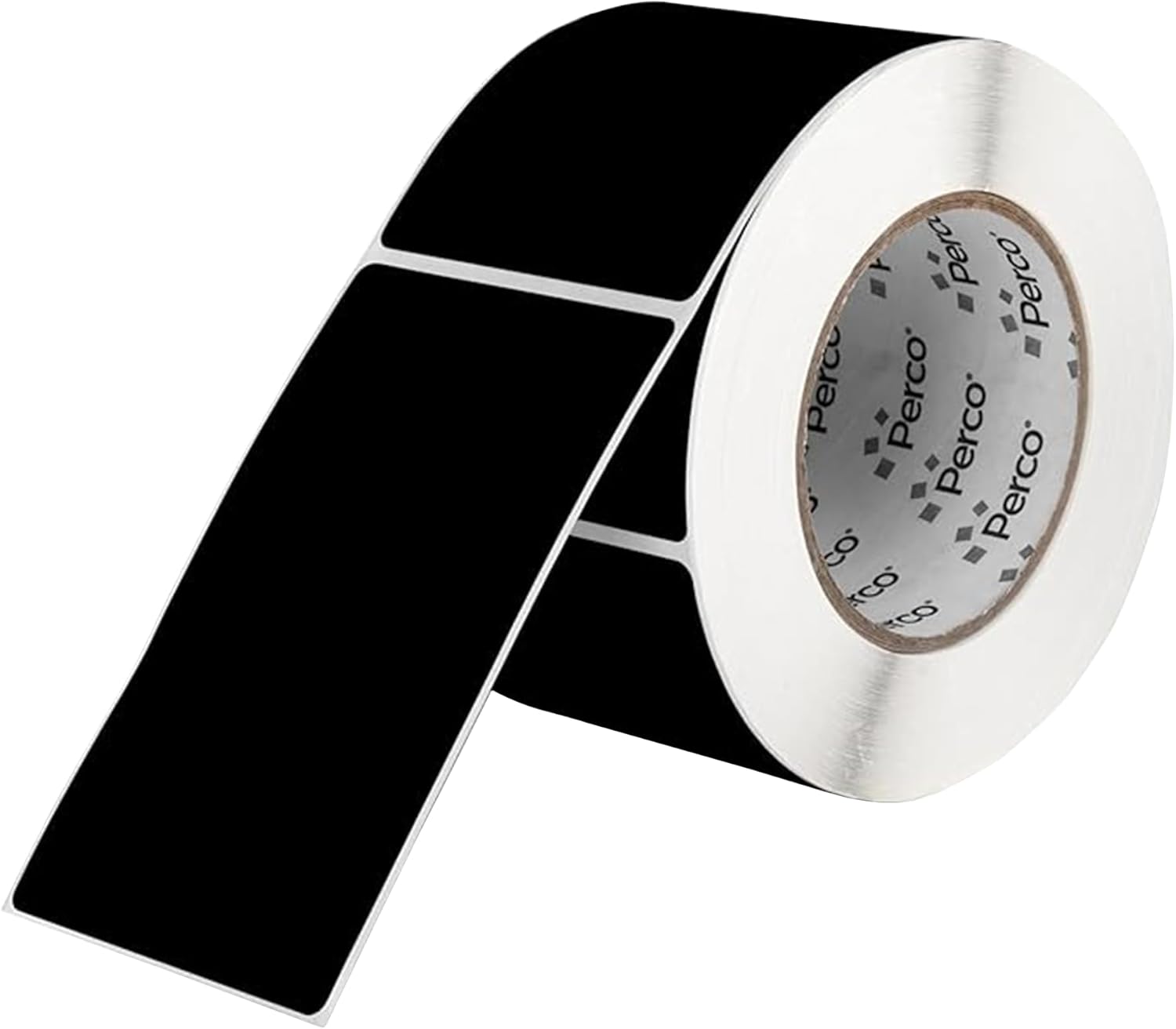 Perco Black Labels 3x5 Inch 500 Stickers/Roll with Easy Peel Perforation and Strong Adhesion for Inventory Management, Color Coding, Moving Boxes, Retail, Organizing & Crafts – Made in USA
