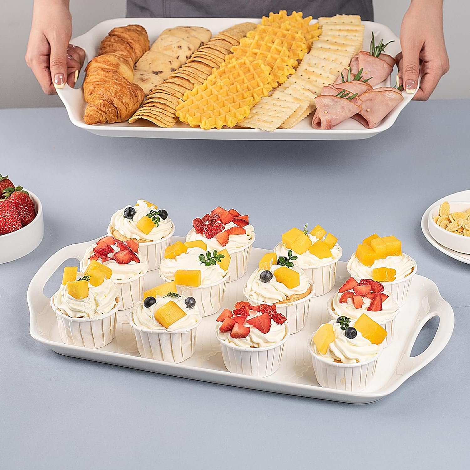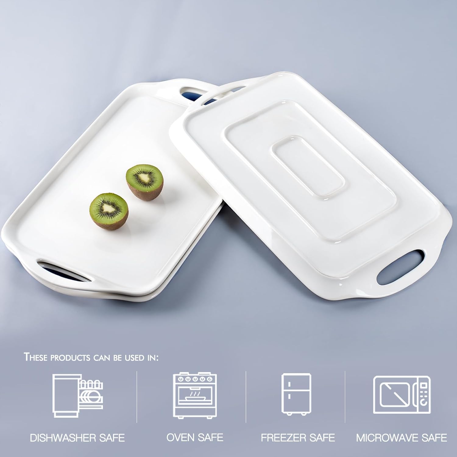 Serving Tray with Handles, 16"x 9.5" Large Serving Platter, White Porcelain Platters for Serving Food, Serving Platters and Trays for Parties, Entertaining, Dessert, Fruit, Turkey, 3-Pack, Rectangle