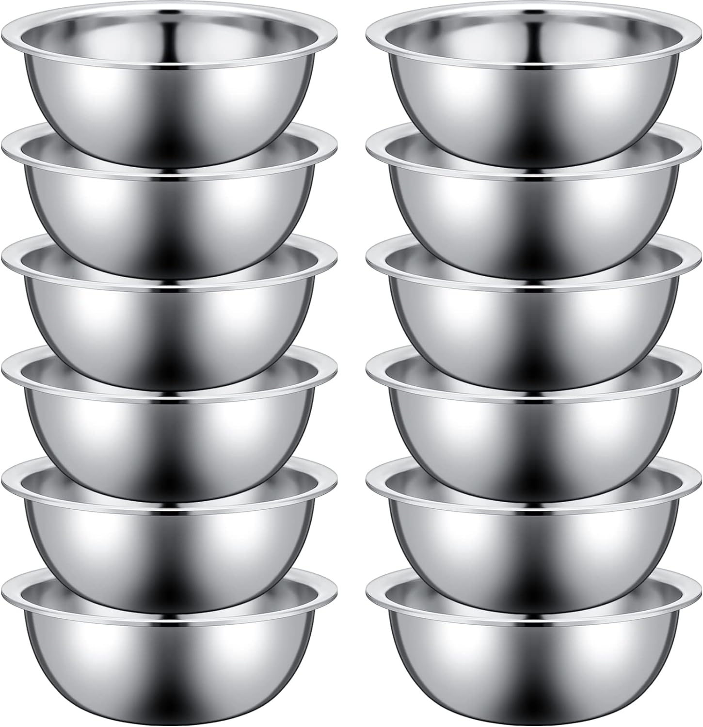 - Stainless Steel Mixing Bowl Set: what you will receive are 12 pieces of stainless steel bowls for mixing in silver color, metal food prep bowls are about 12.6 x 4.25 inches/ 32 x 10.8 cm which can be applied as both baking mixing bowls and serving bowls adequate quantity can well meet your daily use, replacement and sharing demands