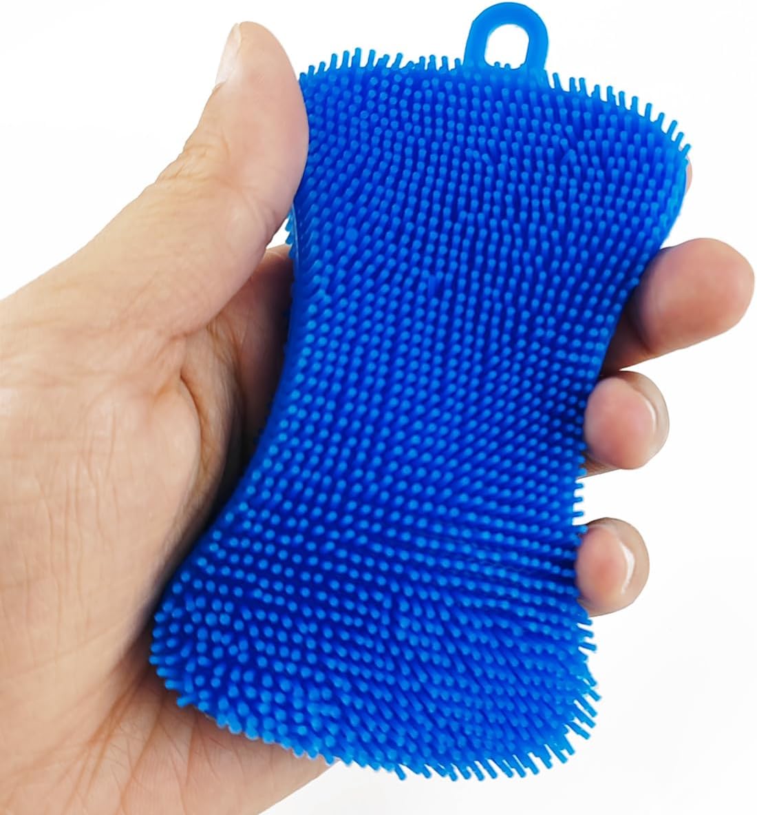 - With thousands of dense silicone bristles on both sides, you can safely use it on your kitchen tools set as the brushes on the sponge is soft and scratch free. And will not stick to oil! No matter how much oil is washed, as long as the sponge is washed with water, the oil instantly washed away.