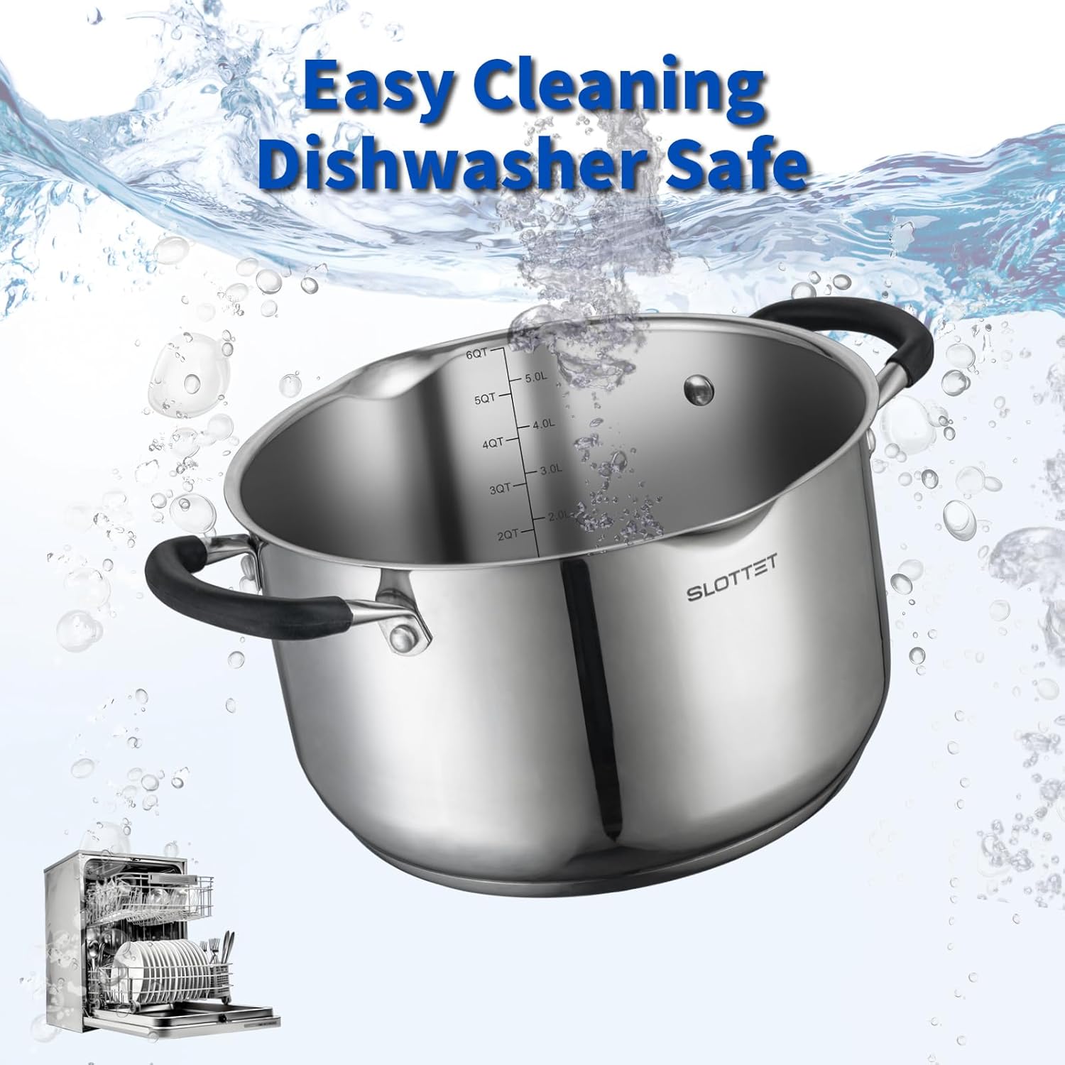 - Cooktop Compatibility: This stainless steel cookware stockpot work on induction, gas, electric, glass, ceramic, halogen, etc. ; Oven Safe up to 500F, Dishwasher Safe.