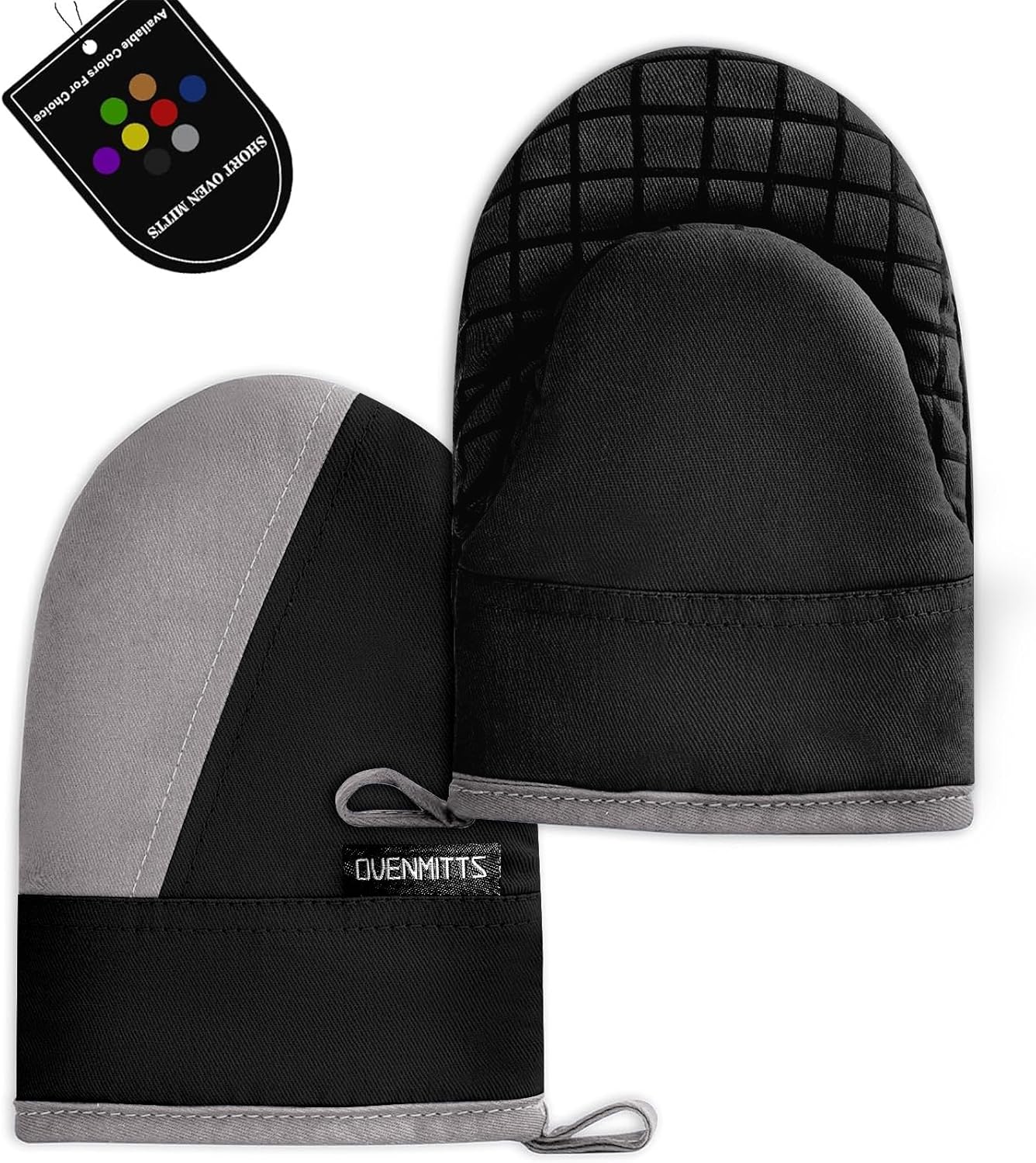 Mini Oven Mitts, Kitchen Oven Gloves Kitchen Mittens 500 Degrees Heat Resistant Baking Gloves, Non-Slip Silicone Surface with Hanging Loops Hot Gloves for Cooking, Baking, BBQ 1 Pair-Black
