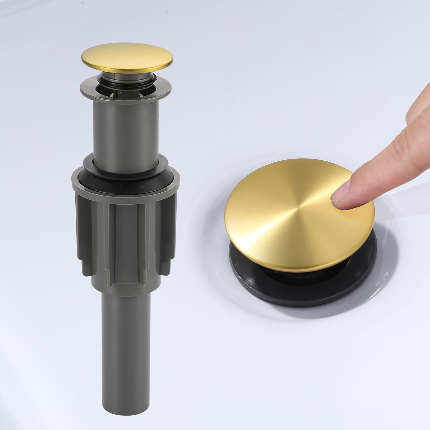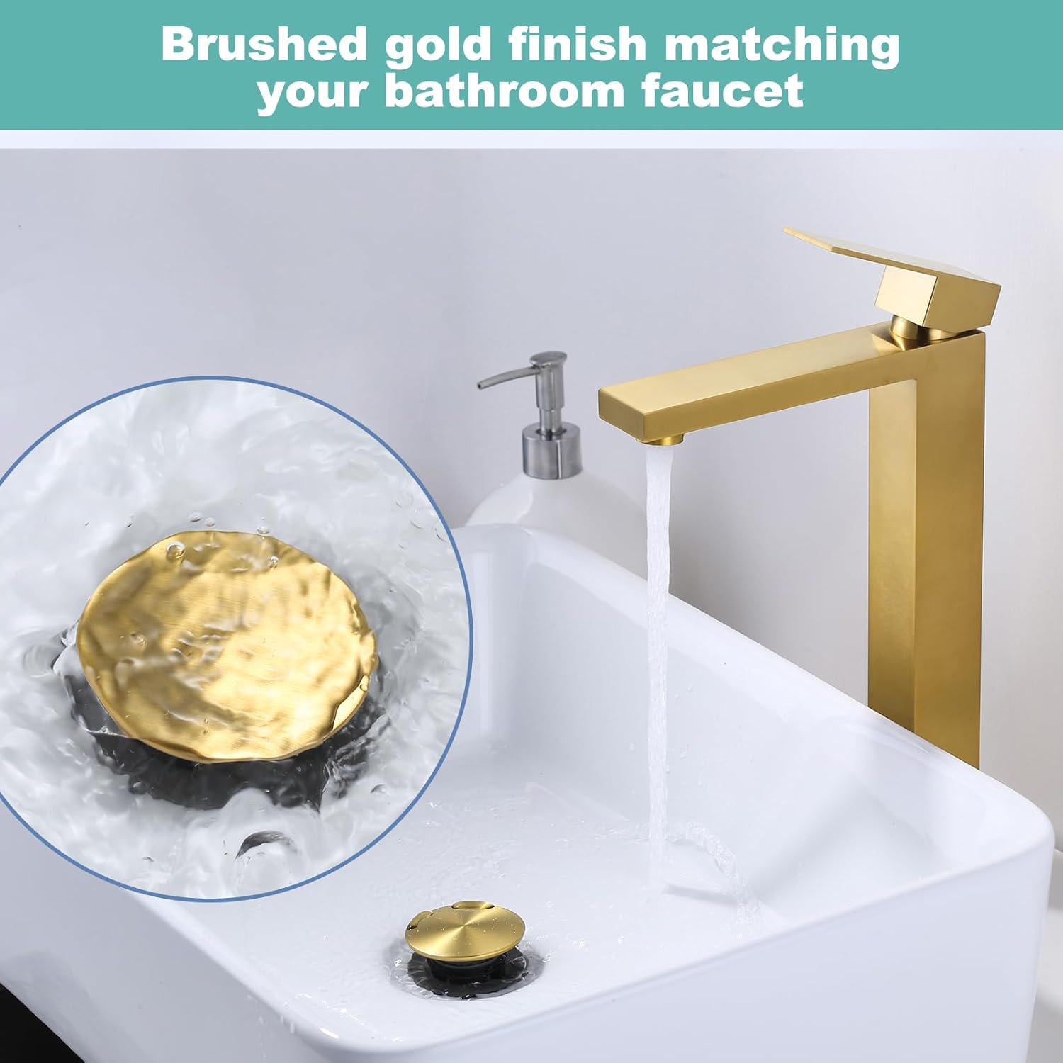 - 【Brushed Gold Finish】Its brushed gold finish gives this bathroom sink stopper a sophisticated look to match your faucet, making it an attractive addition to your powder room or a master bathroom. Note: The appearance of brushed gold can vary due to lighting, viewing angle, and screen display.