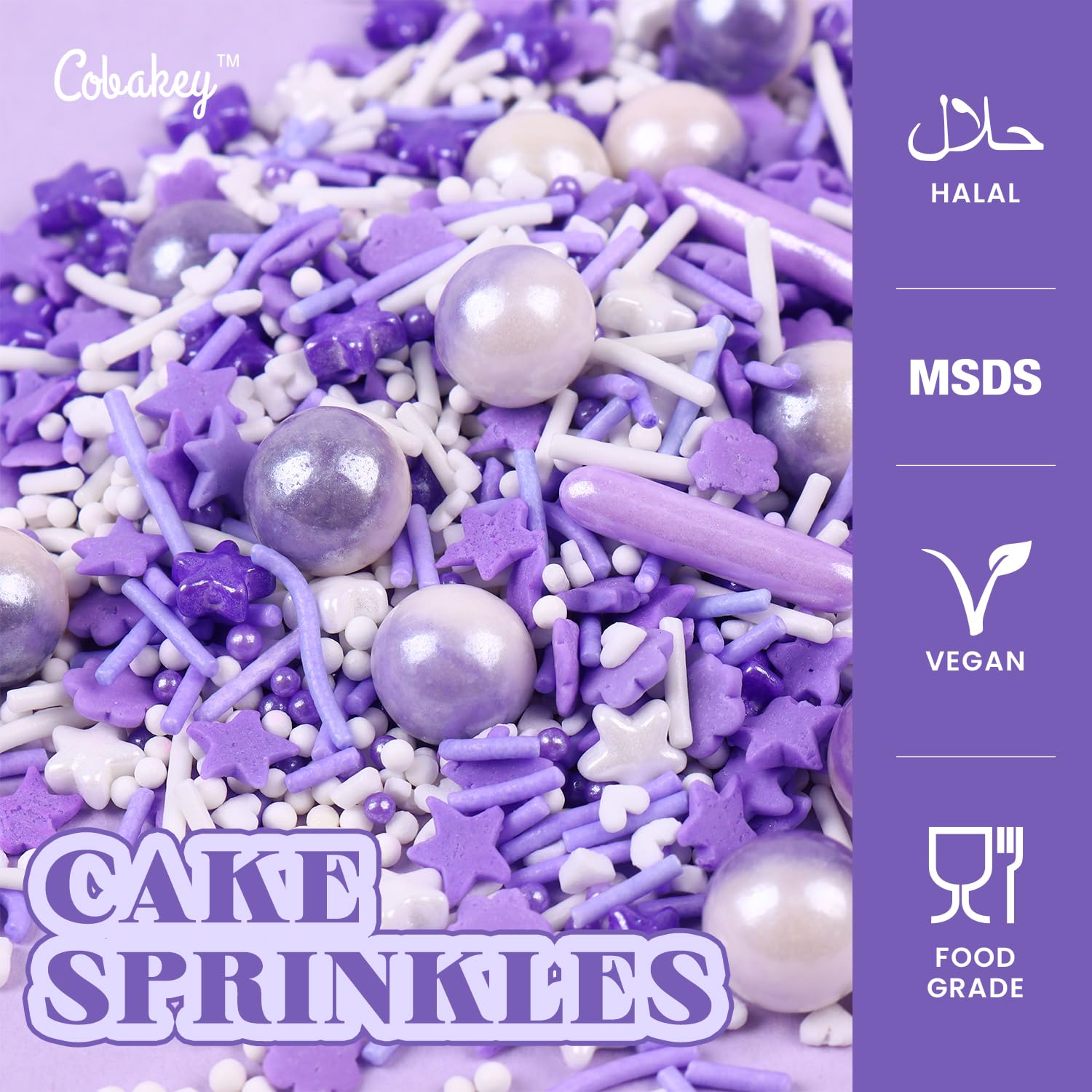 Purple Sprinkles for Cake Decorating 4.23ounce - Sugar Mix Contains Star & Pearl Sprinkles for Cupcake Toppers, Ice Cream, Candy, Cookie Decorations - Holiday Party Supplies