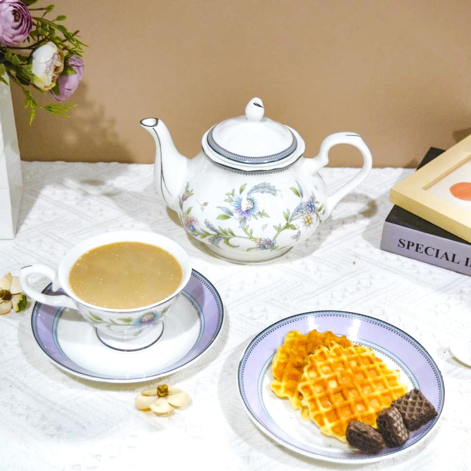 - 【Application Scenario】The unique bone China tea set with teapot is not only the perfect companion for your life, but also the best Christmas gift for friends and relatives, coffee or tea lovers. tea sets for adults are suitable for senior tea parties, weddings and parties.