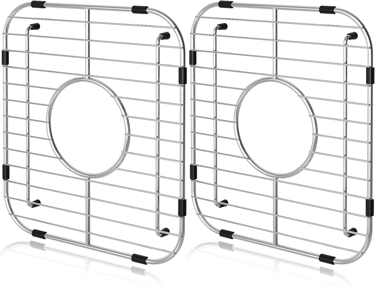 Orgneas Sink Protectors for Kitchen Sink, Universal Double Bowl Sink Bottom Grid 12.5"x10.5"x1.25", 304 Premium Stainless Steel Kitchen Sink Protector Grid Sink Grate Rack Centered Drain 2 Packs