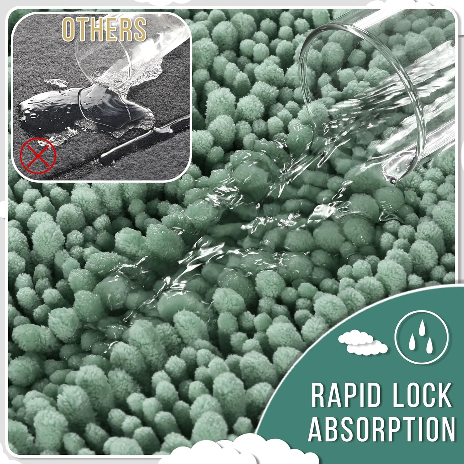 Yimobra Long Bathroom Rugs Non Slip Washable 44x24 Inch - Ultra Soft Absorbent Chenille Bath Mat, Quick Dry Shaggy Floor Carpet for Tub Shower, Green Home Decor Accessories