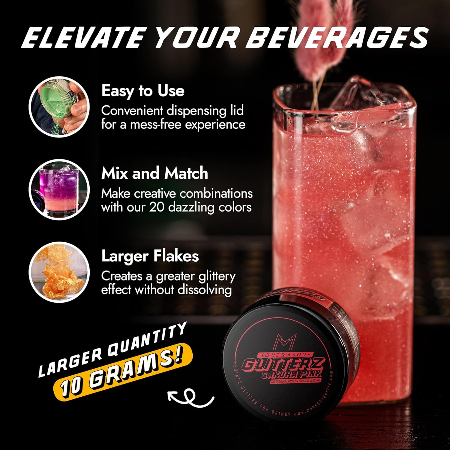 - VERSATILE, EASY, & MESS-FREE – Effortlessly enhance any dish or drink. Simply sprinkle MONÉGASQUE Glitterz onto halloween cocktails or desserts for a dazzling effect. With 20 vibrant colors, it's perfect for any event, keeping your creations stunningly fresh.