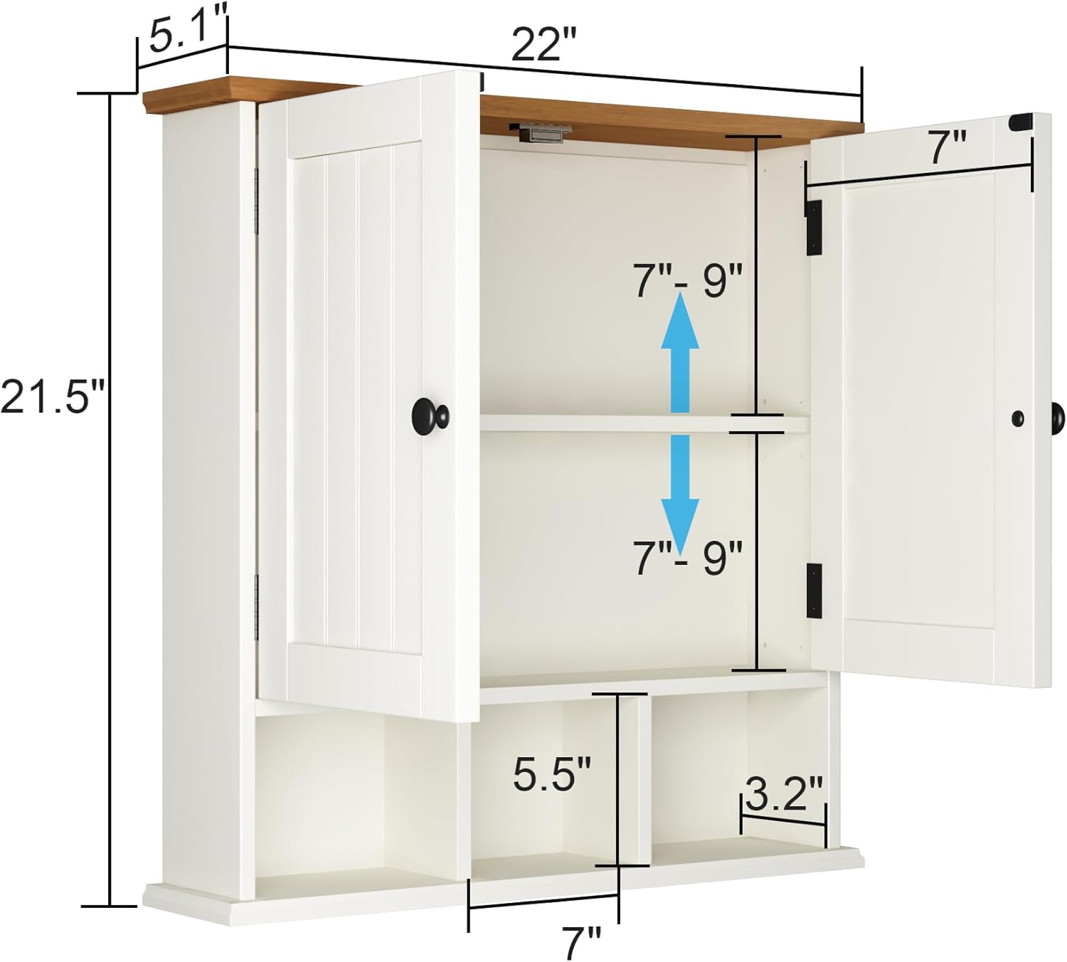 - 【Multifunction Bathroom Wall Cabinet】Wall mounted cabinet is made of premium MDF board, the enclosed space with 2 doors can hide toiletries for a clean presentation,1 adjustable shelf and 1 fixed shelf with 3 separate compartments are suitable for placing decorations, larger storage space, smaller volume, effectively saving countertops space, perfect for your elegant small bathroom design