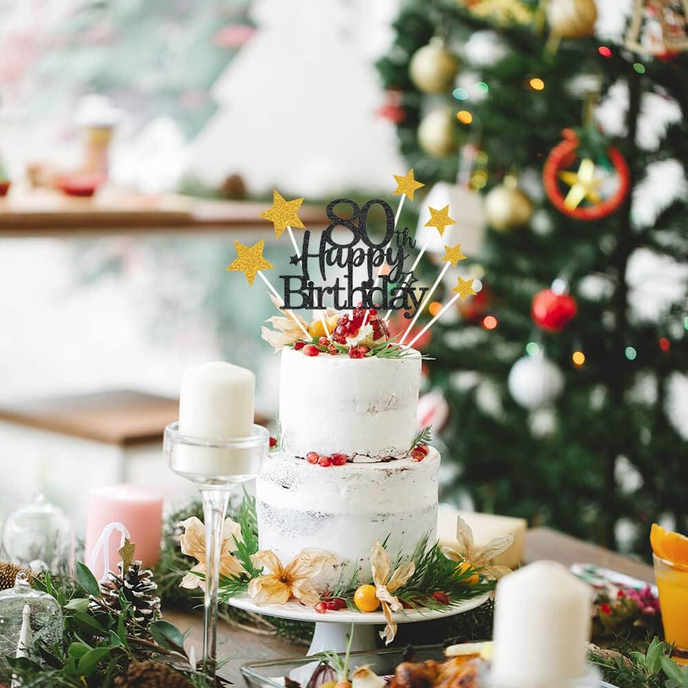 Glittery 80th Happy Birthday Cake Topper with Star,Personalised 80 Birthday Cake Toppers Party Decorations Party Supplies for Men Women Black Gold