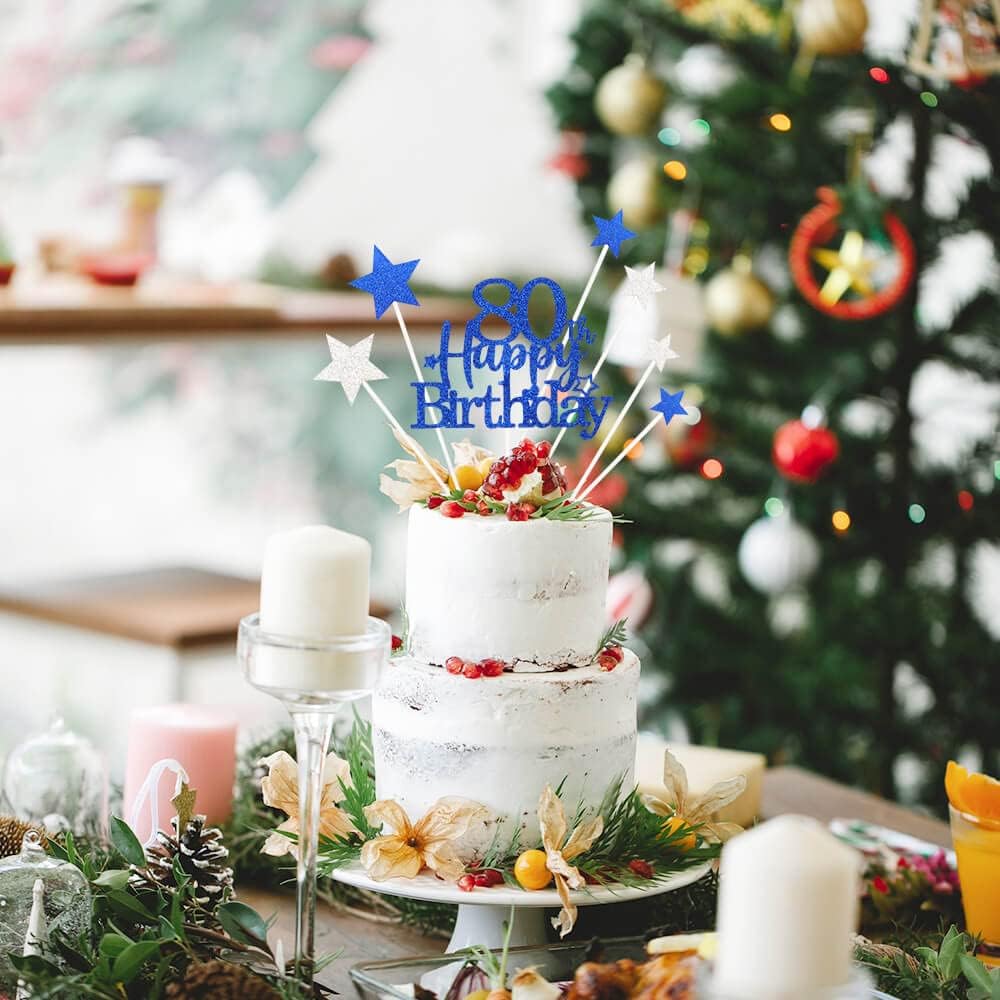 Glittery 80th Happy Birthday Cake Topper with Star,Personalised 80 Birthday Cake Toppers Party Decorations Party Supplies for Men Women Blue