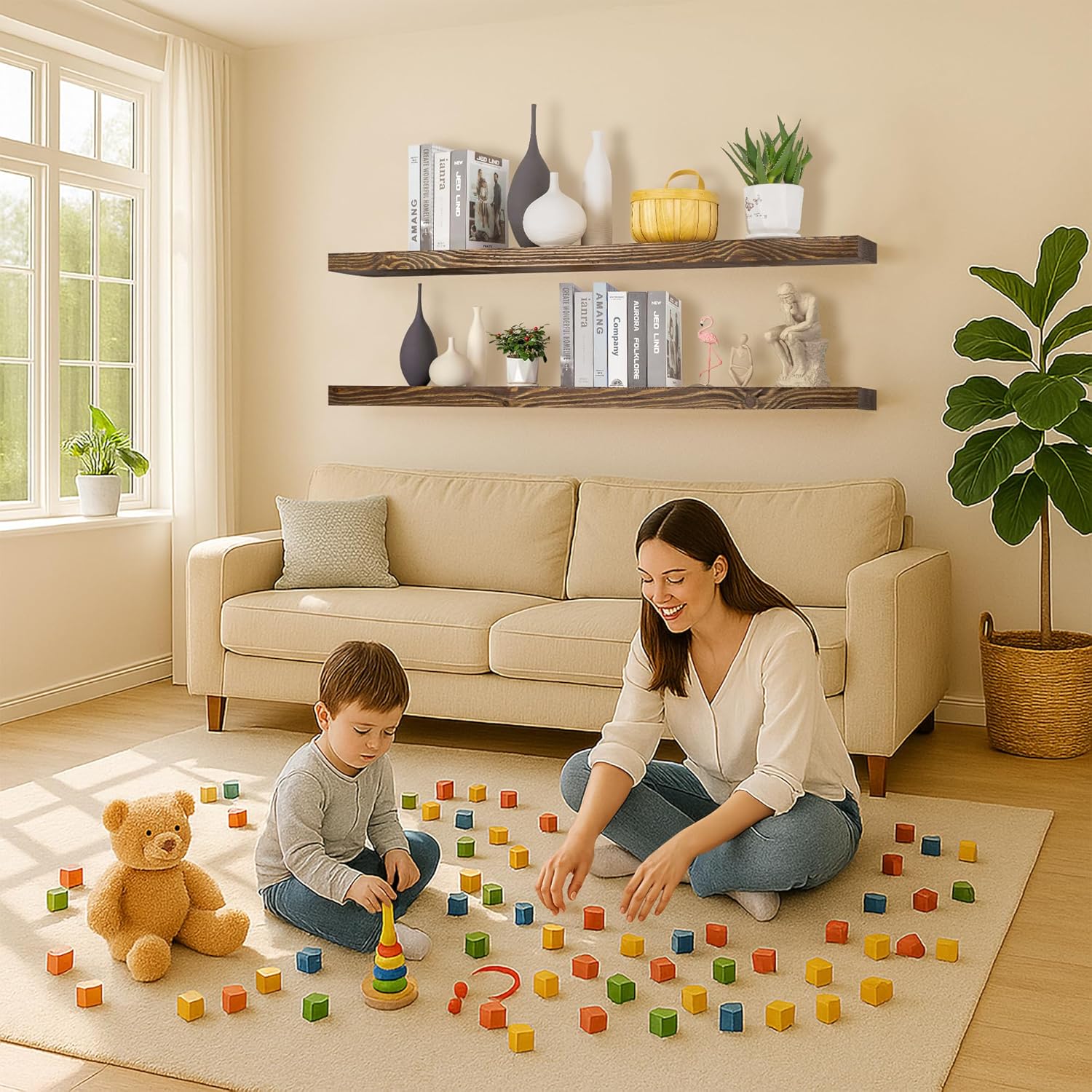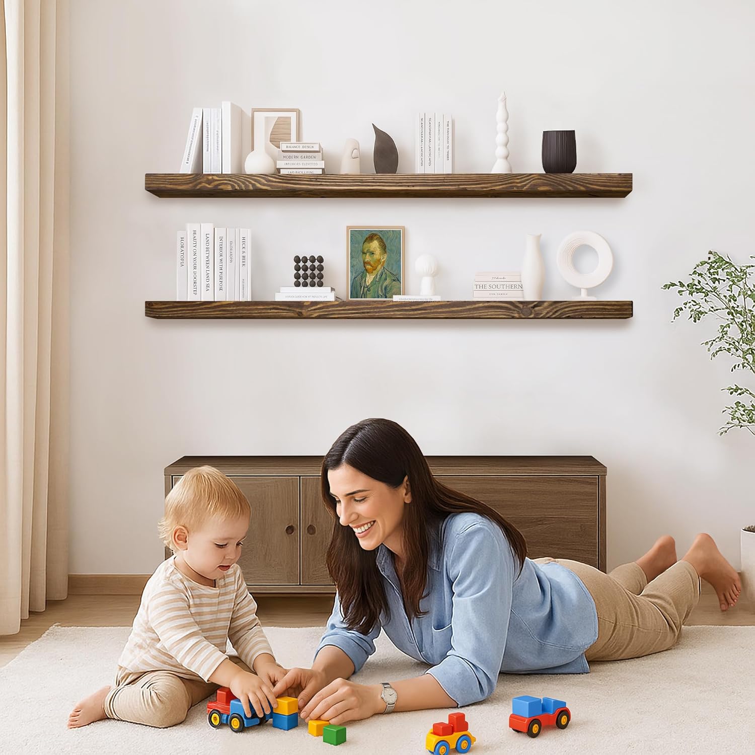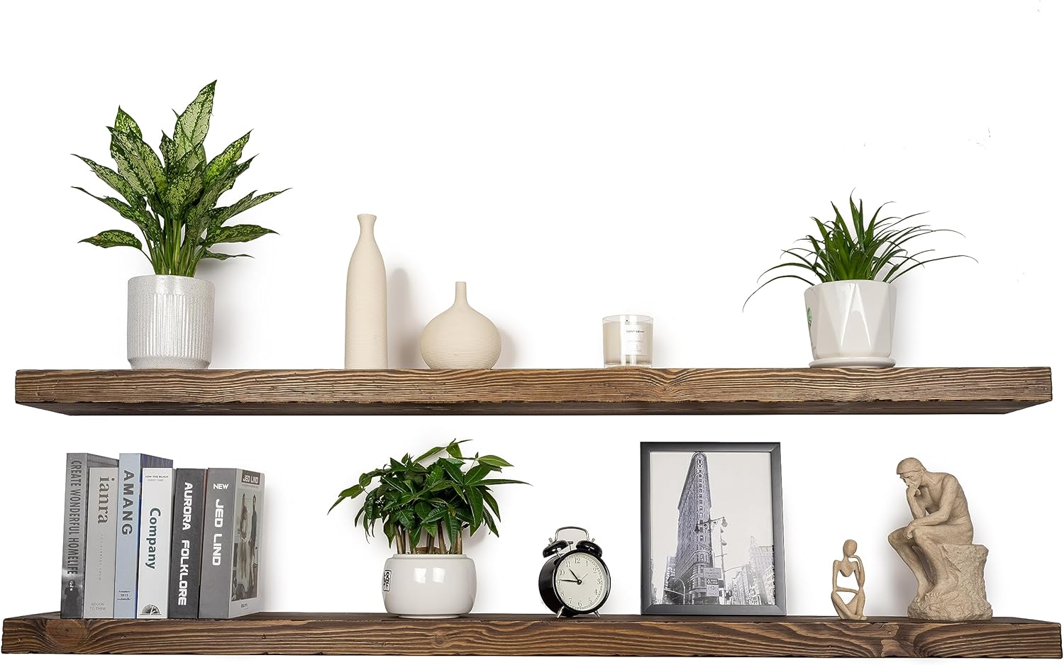 Floating Shelves 72 inch Long 8 "deep Set of 2, Heavy Duty Wood Wall Mounted Shelves for Bathroom Living Room Kitchen,Book Shelves with Thickened Hidden Bracket-Distressed Walnut