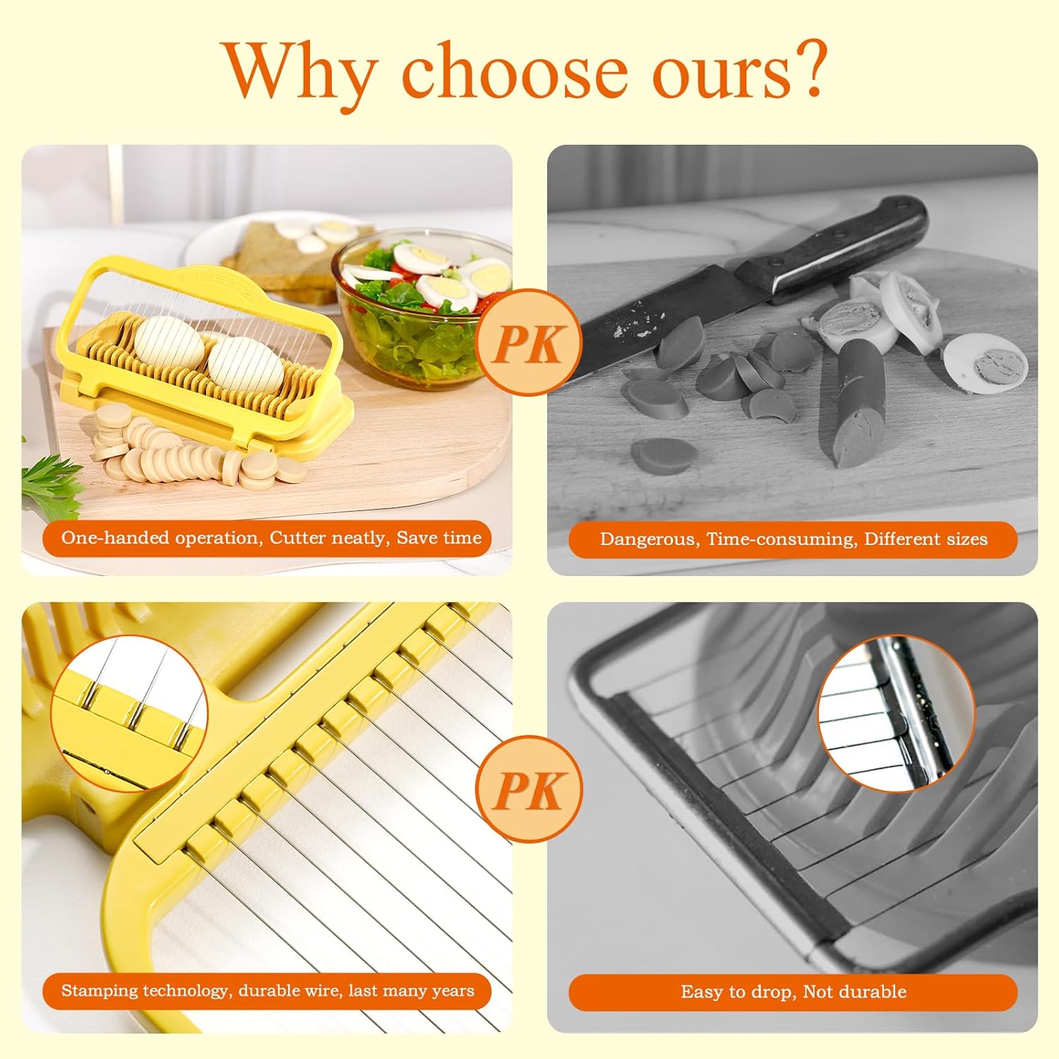 - Multifunctional Slicer: Perfect for slice Egg, Skin-less hotdogs, Banana, Strawberries, Long dough, Kiwis, Butter, and Any soft Fruit.