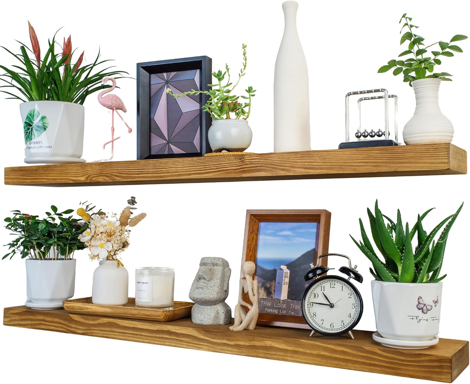 - Easy Installation: Installing our floating shelf is a breeze. With user-friendly instructions and included mounting hardware, you'll have it securely hung on your wall in no time, adding both charm and organization to your space.