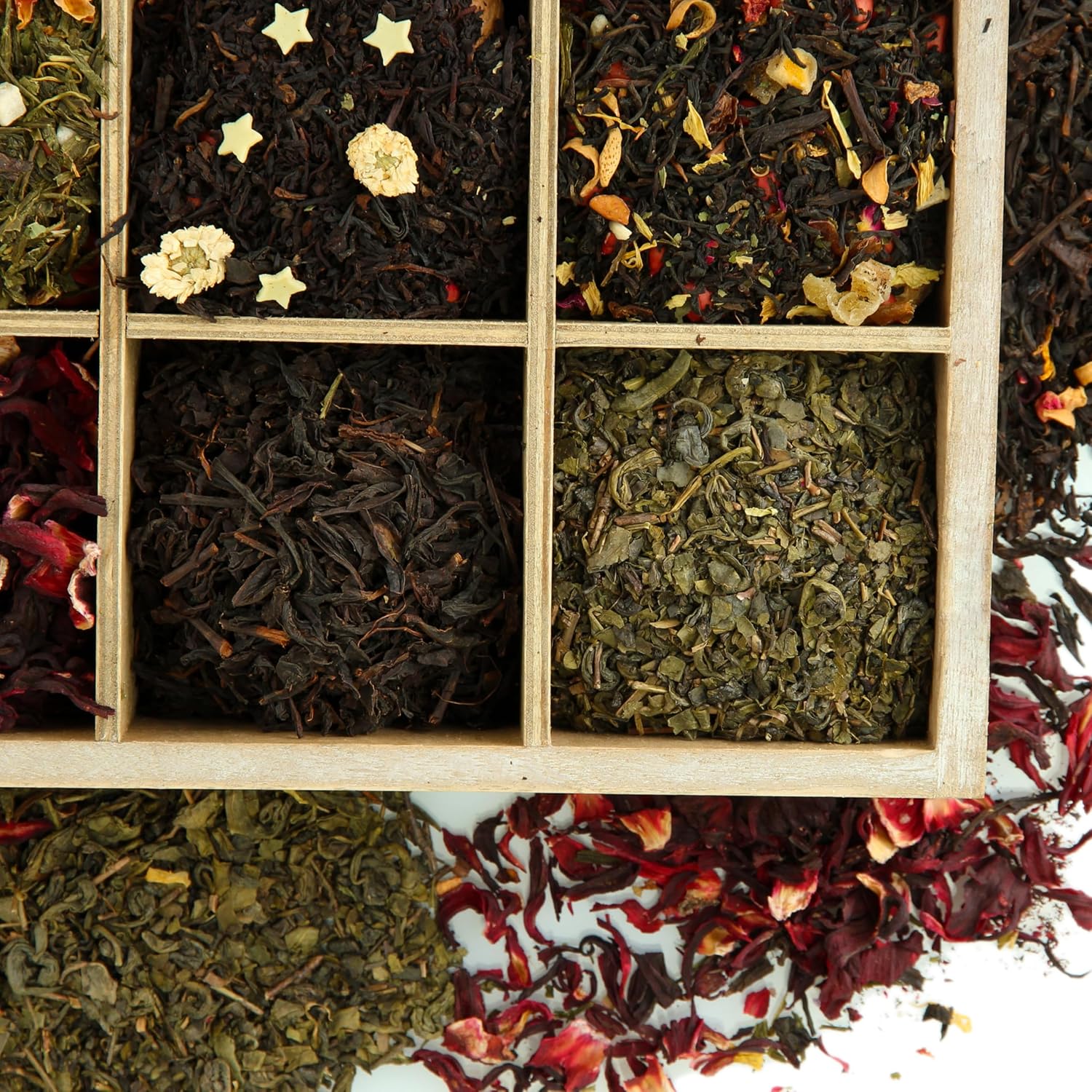 - Big Spacious Compartments - Tea bags come in different shapes and sizes. Our wooden boxes have removable - oversized - slots to fit everything in your tea collection with easy browsing. You can keep bagged tea, loose leaf, matcha, and accessories in the cubbies. Overall Outside Dimensions: 11.1” x 8.1" x 4.2”