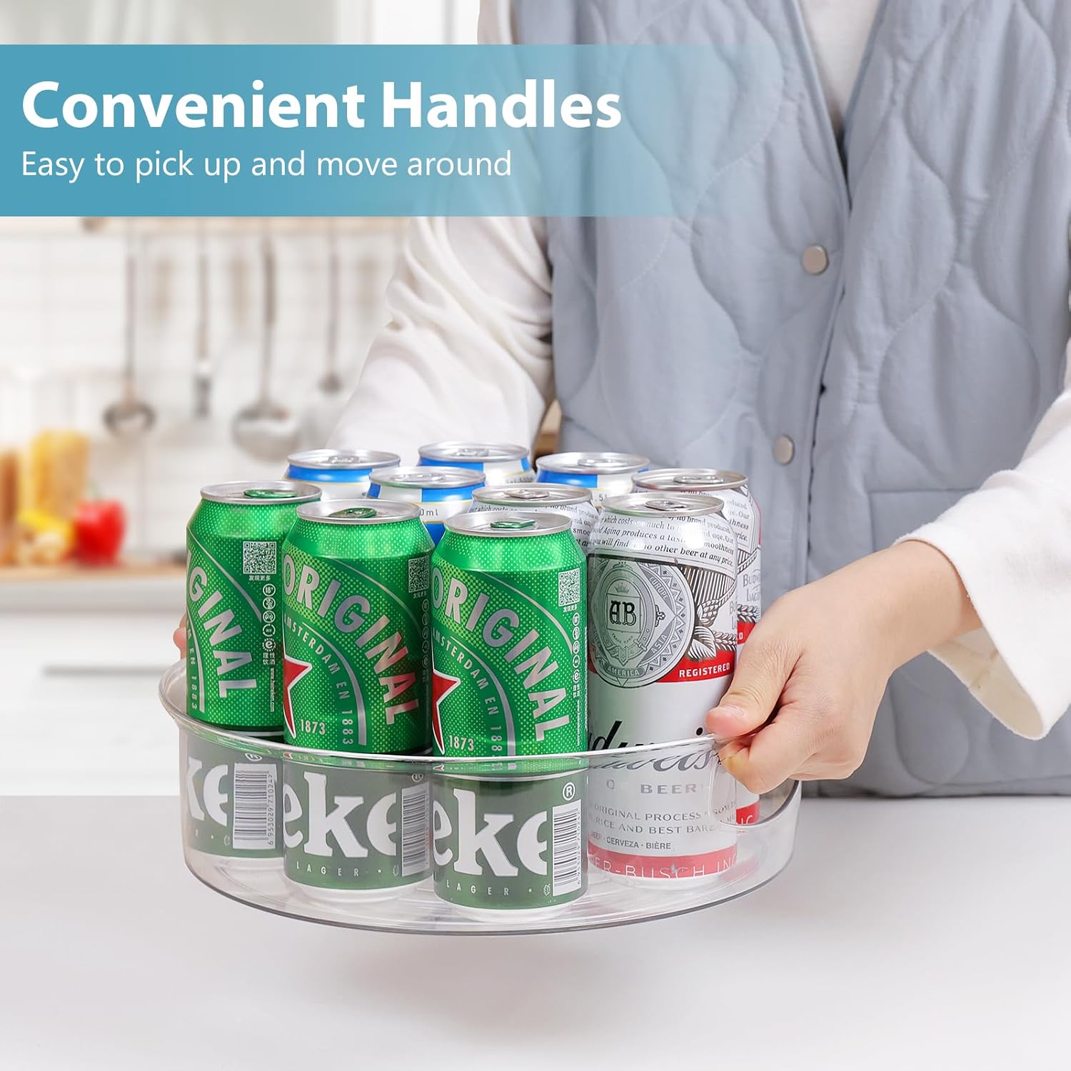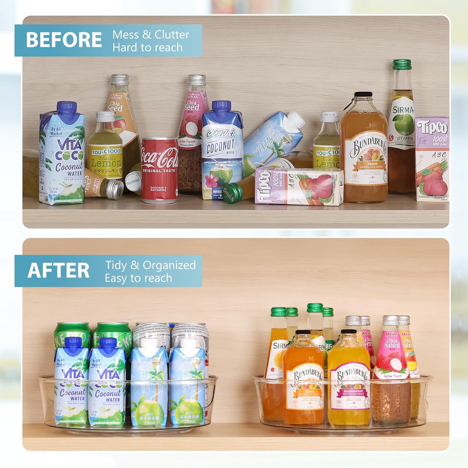GUZON 4 Pack Lazy Susan Organizer with Handles, 12 Inch Large Lazy Susan Turntable for Cabinet, Clear Rotating Organizer for Kitchen, Pantry, Dresser, Refrigerator, Bathroom, Table, Fridge, Countertop