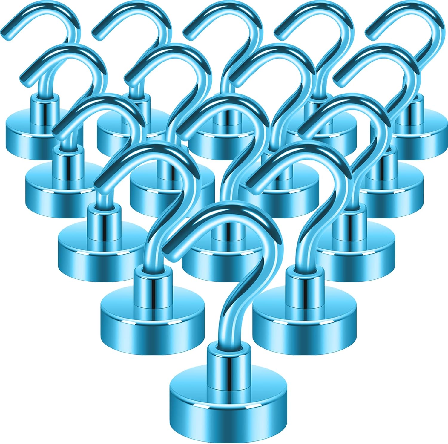 Neosmuk Magnetic Hooks,30lb+ Heavy Duty Earth Magnets with Hook for Refrigerator, Extra Strong Cruise Hook for Hanging, Magnetic Hanger for Curtain, Grill (Royalb+LUE, 15 Pack)