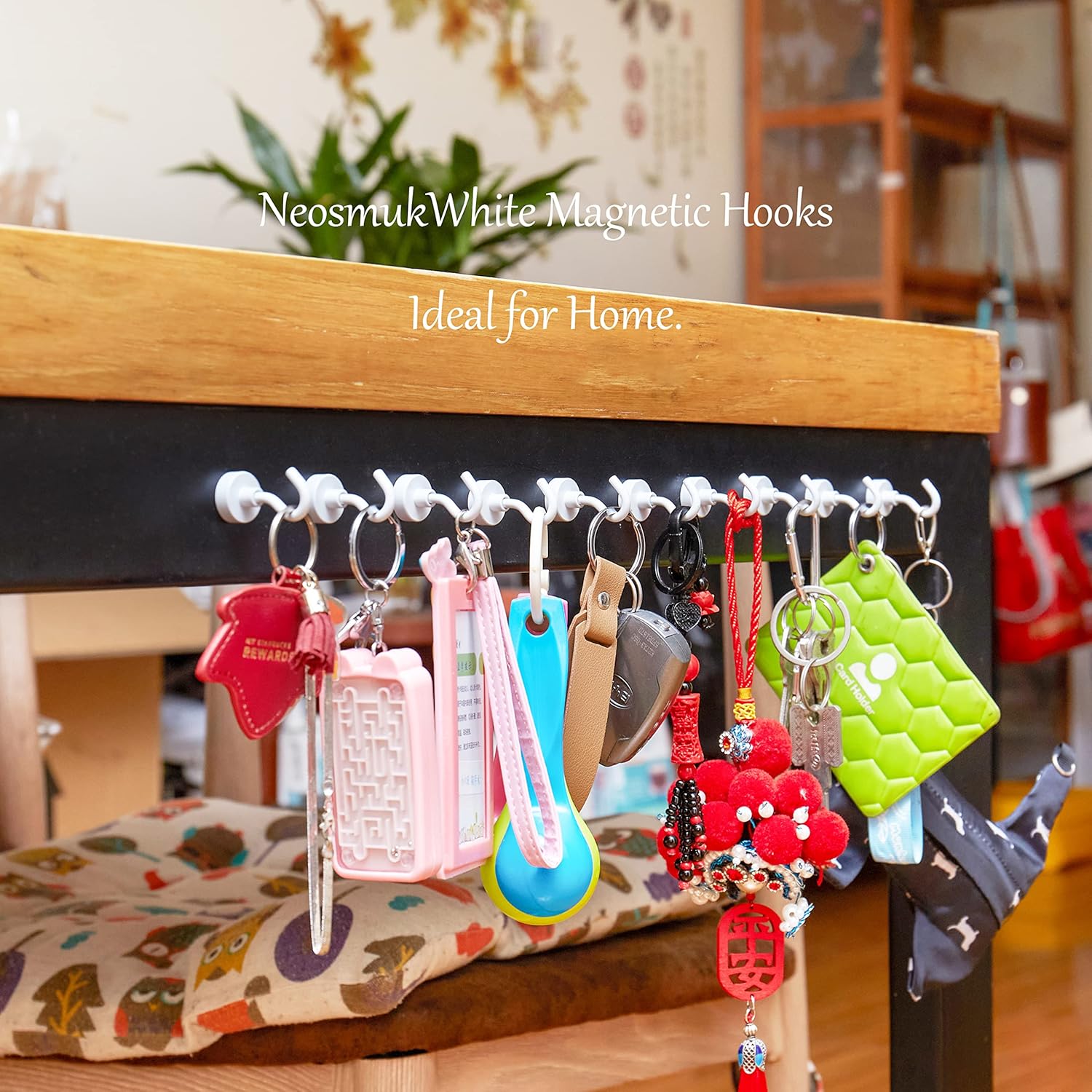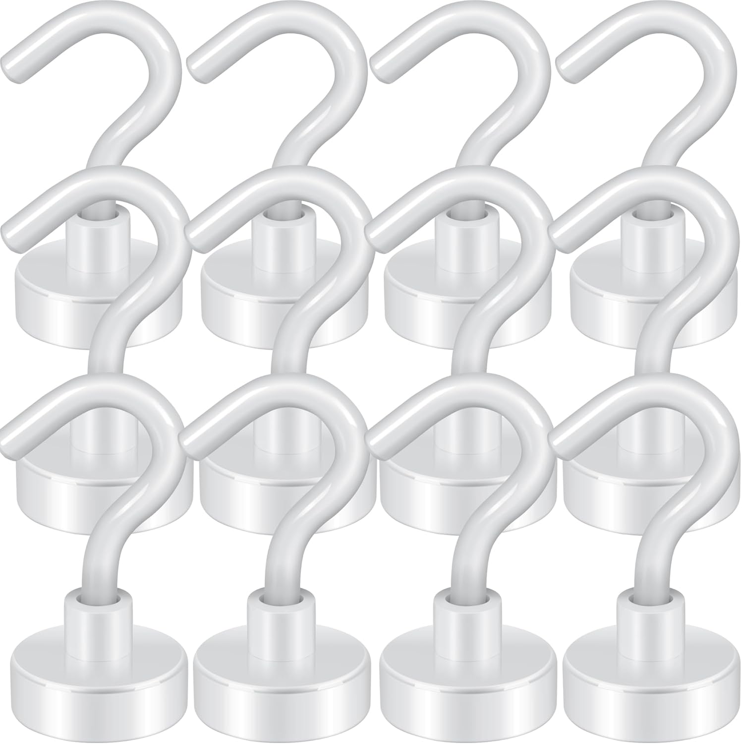 Neosmuk Magnetic Hooks, Cruise Ship Essentials, 30lb+ Heavy Duty Magnetic Hooks for Cruise Cabins, Refrigerator, Grill, Hanging, and Travel | Extra Strong Must-Haves Magnet Hook(White,Pack of 12)