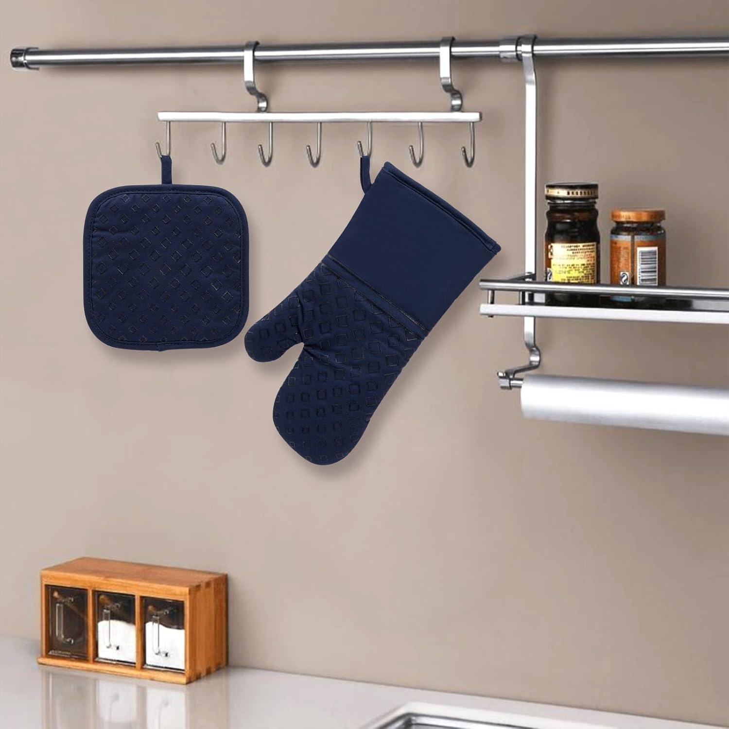 Set of 4 Oven Mitts and Pot Holders, 482 F Heat Resistant Hot Plate Moving Non-Slip Gloves for BBQ, Grill, Baking, Cooking, Oven, Microwave (Deep Blue)