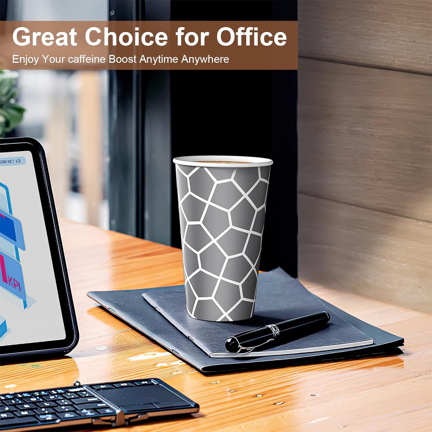 - Unique Style: These hot cups 16 oz with two irregular polygonal pattern memorable paper cup design that will stand out in a busy conventional hall or a jam-packed event
