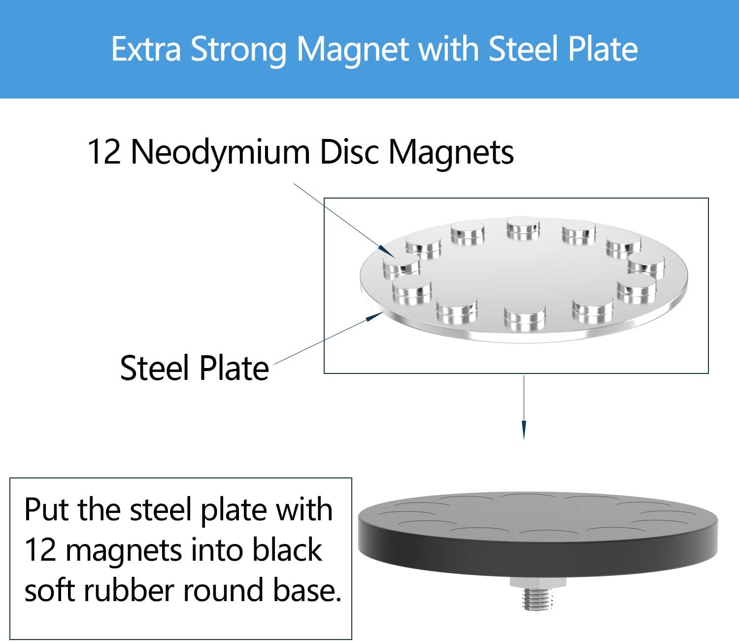 - š§²[Sturdy Magnetic Holders]: Each 3.46-inch magnet base comes equipped with 12 super-strong rare earth magnets. In our tests on 1.18-inch steel plates, the strong garage magnetic hooks exhibited a vertical pull force of 130lbs and a horizontal pull force of 26lbs.