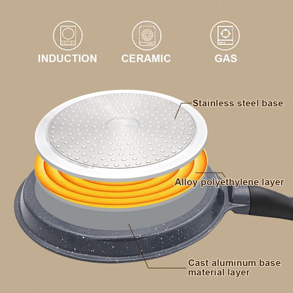 - [SCOPE OF APPLICATION] - Suitable for all heating methods, including induction and electric ceramic hobs. Oven safe (without the handle). To protect the coating and prolong the life of the pan, it is recommended to cook on low heat.