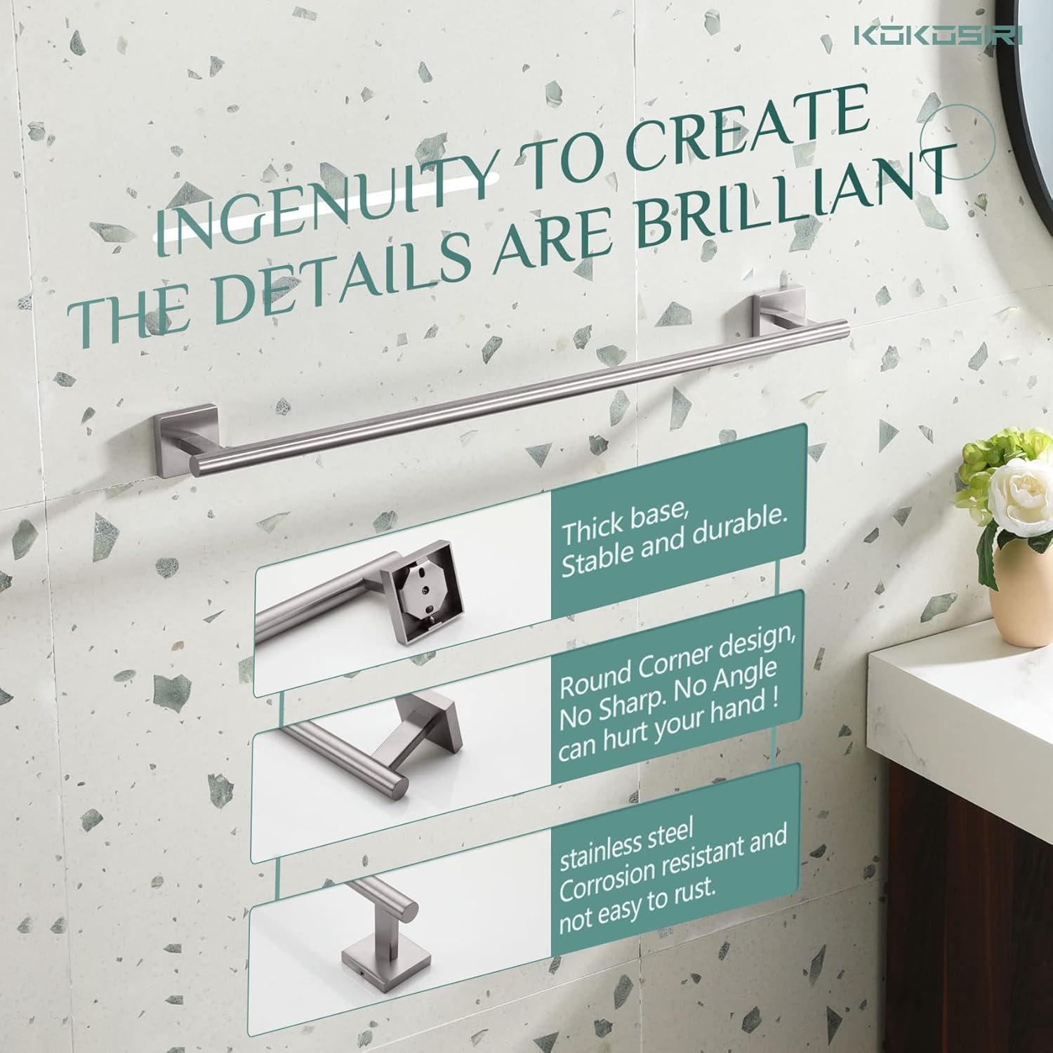 - ◄ Rustproof ► KOKOSIRI towel bar made of SUS 304 Stainless Steel (premium stainless steel). All metal design and used of high-grade steel which can resist rust and corrosion. For your health, all the materials we use are the highest quality and harmless. You can rest assured to use all of our products