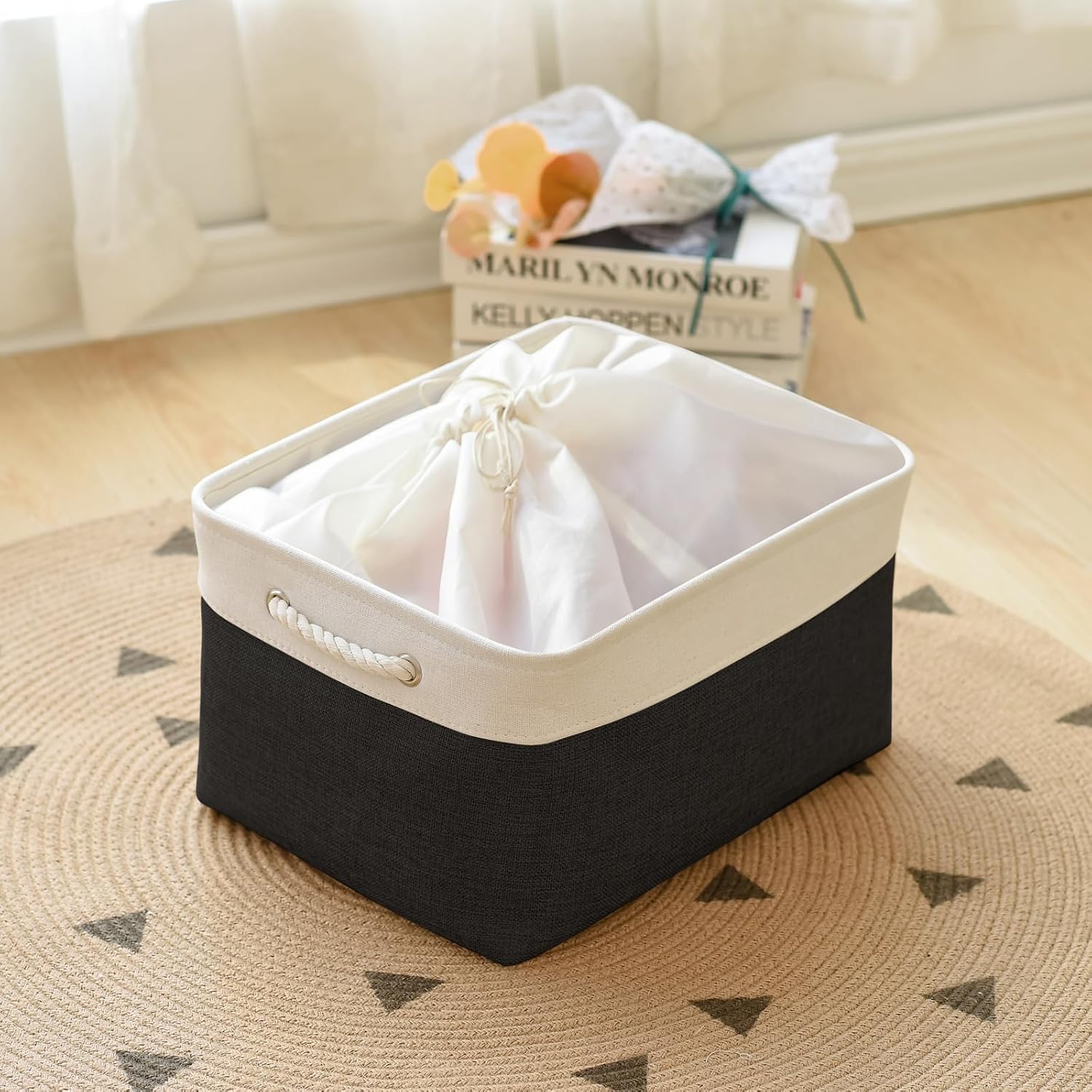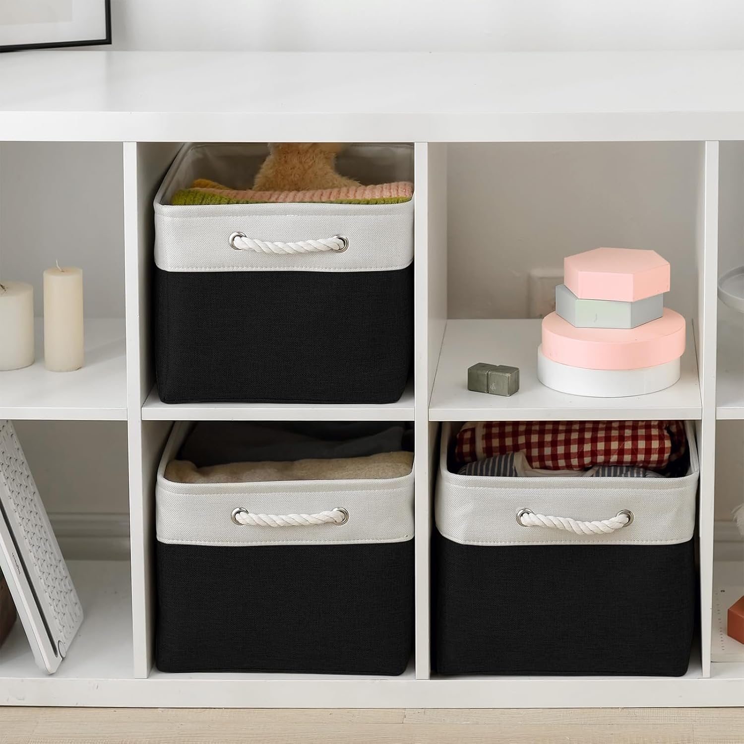 TheWarmHome Organization and Storage Basket for Organizing - Jumbo 3 Pack 17.7x13.8x9.7 inch Fabric Storage Cubes for Closet Gifts Organizer Empty Book (White & Black)