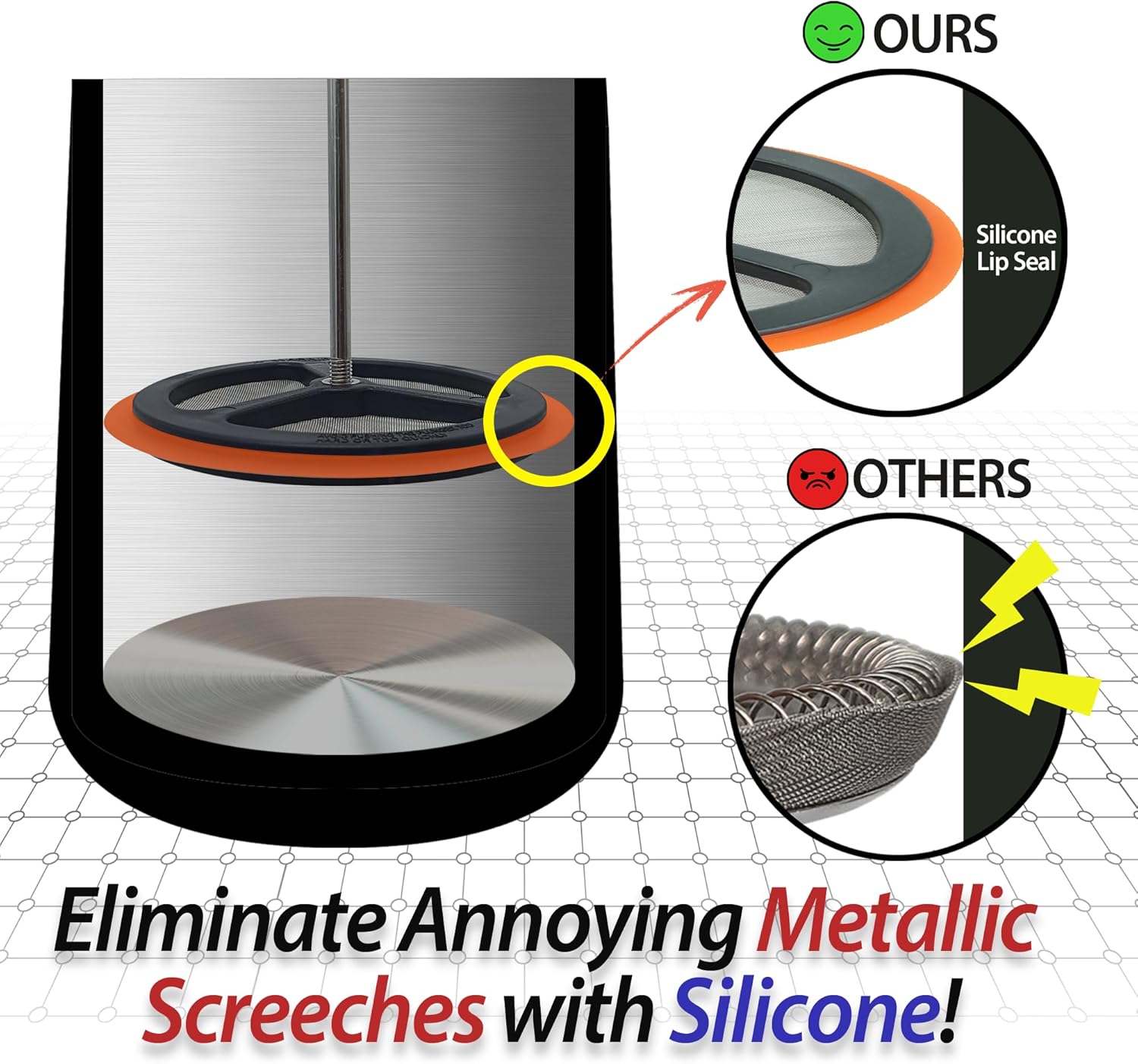 - Effective Filtration: Our silicone filtration ensures a perfect cup of coffee without any grounds. It uses a silicone gasket to provide a smooth and rich taste.